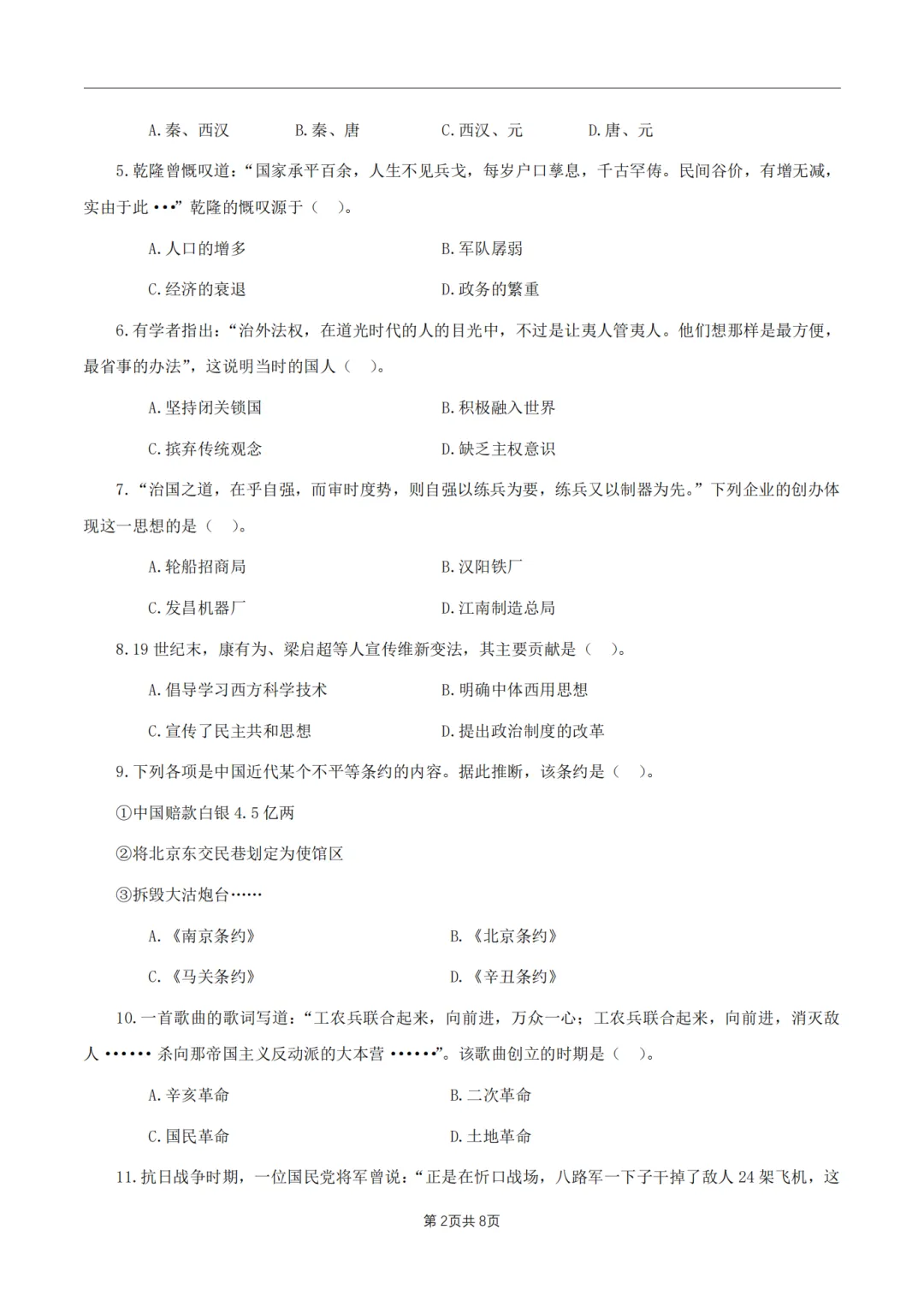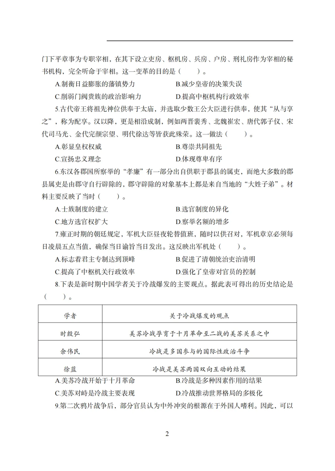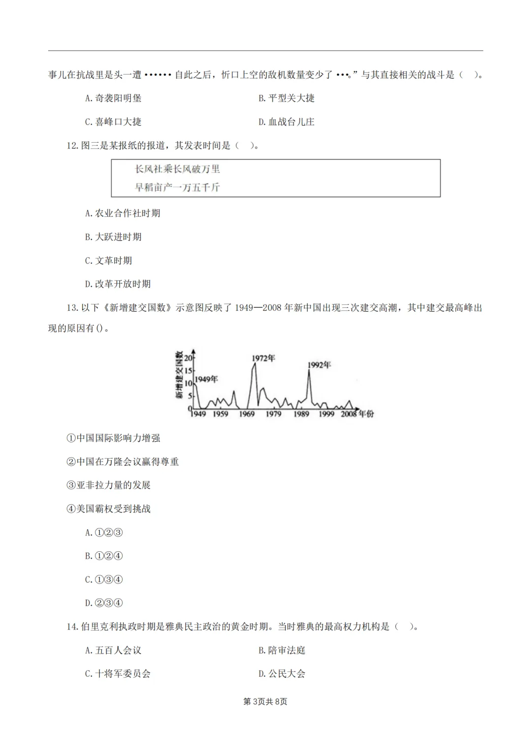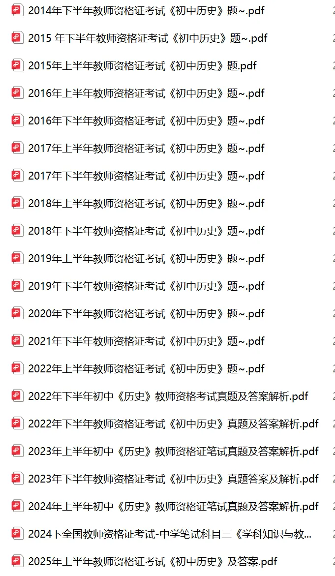 >26年3月教资笔试科目三初中历史历年真题汇总含答案可打印