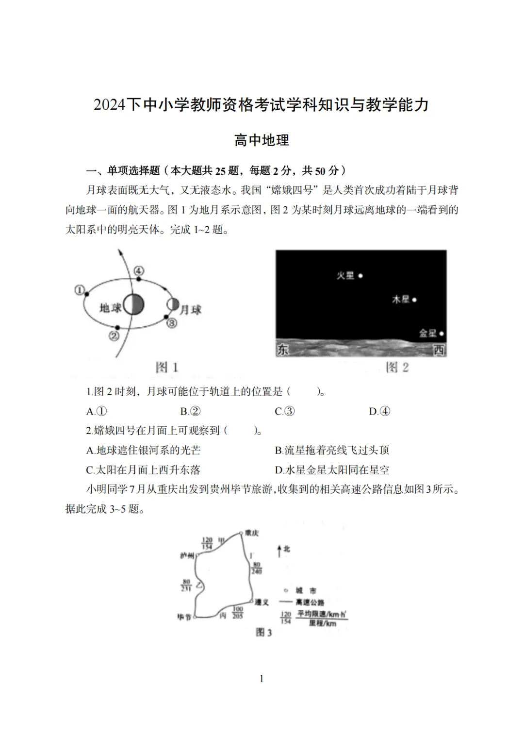 26年3月教资笔试科目三高中地理历年真题汇总含答案可打印