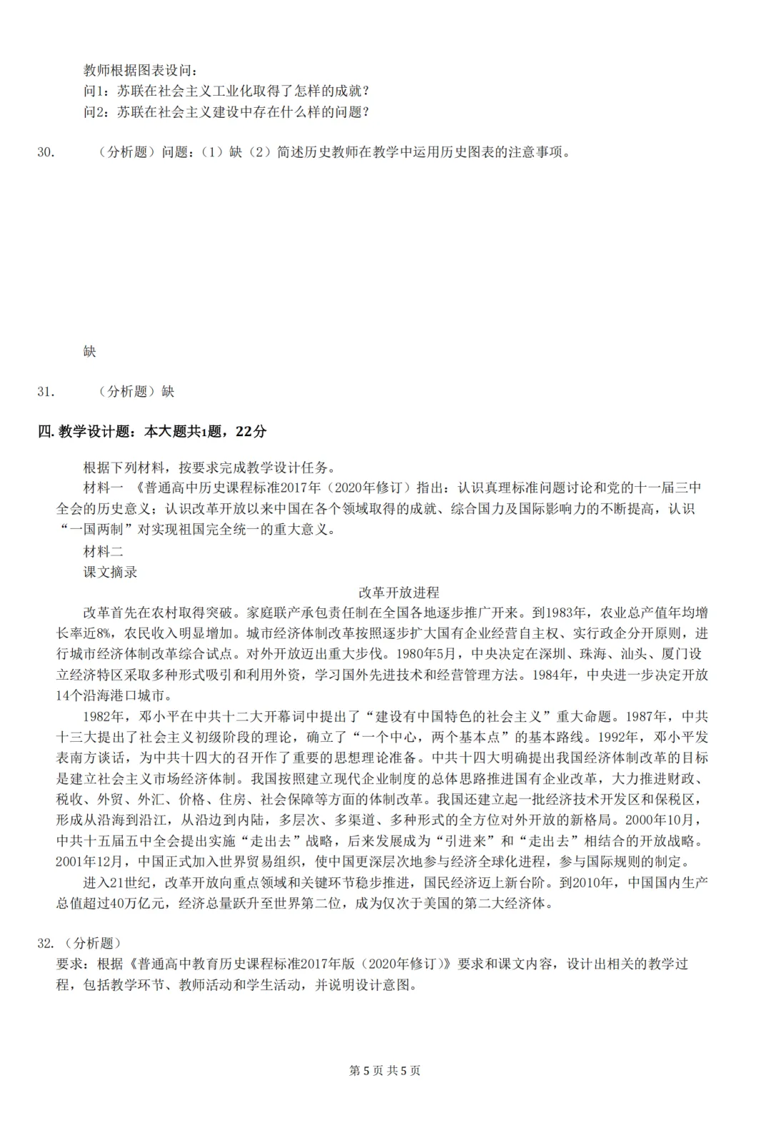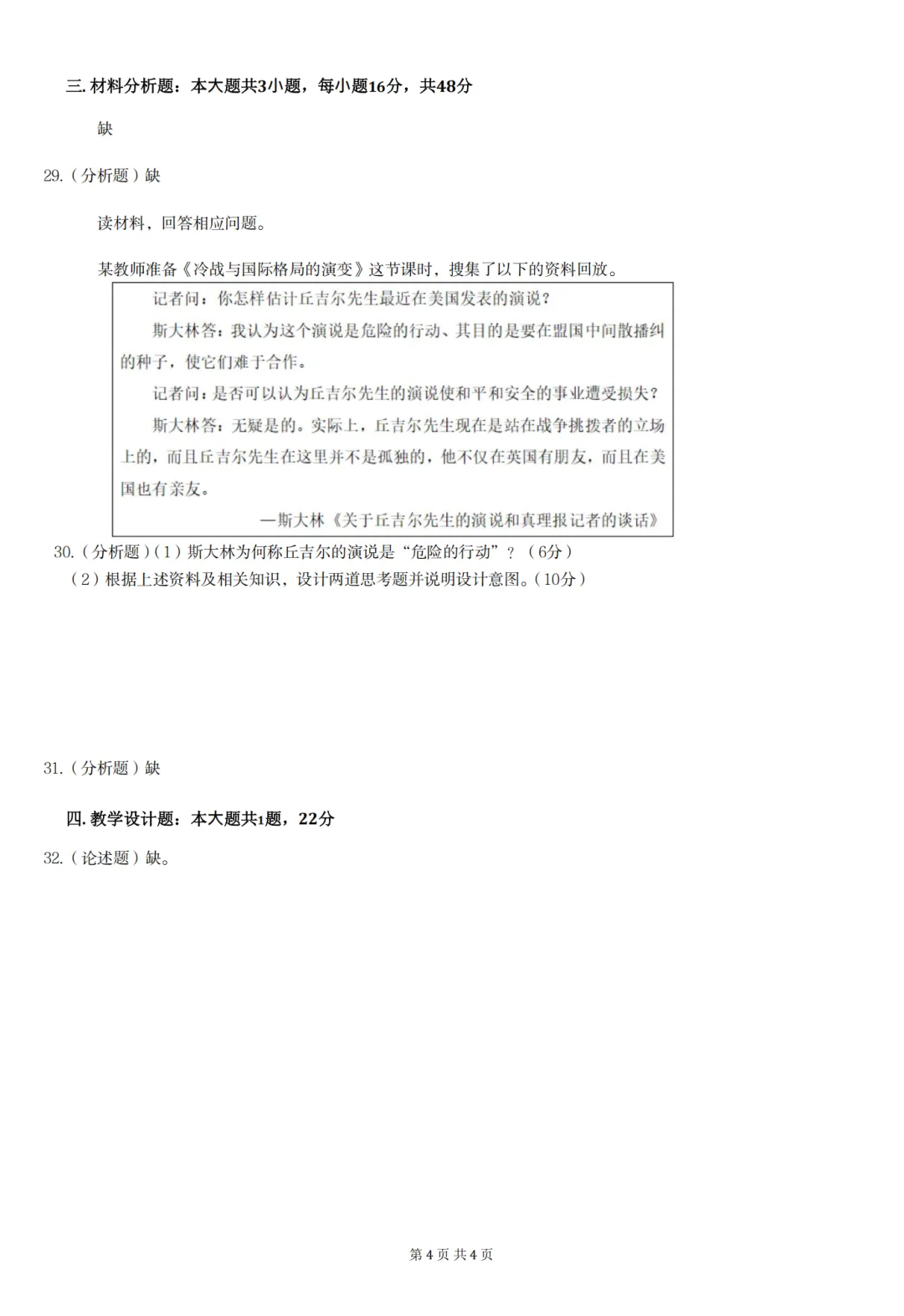 26年3月教资笔试科目三高中历史历年真题汇总含答案可打印