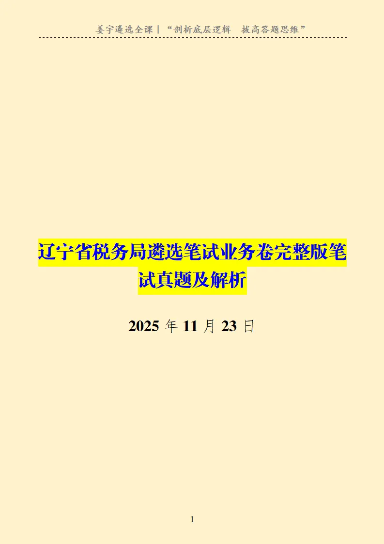 >2025年11月23日|辽宁省税务局遴选笔试业务卷完整版笔试真题及解析