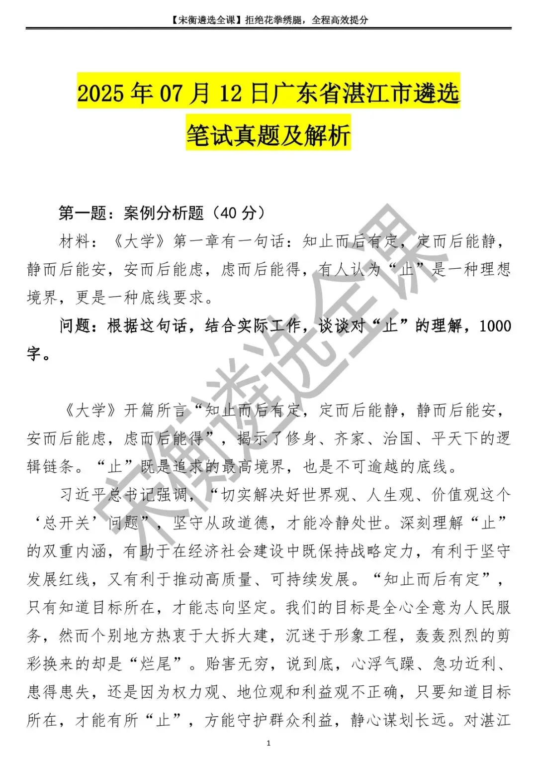 2025年07月12日广东省湛江市遴选笔试真题及解析