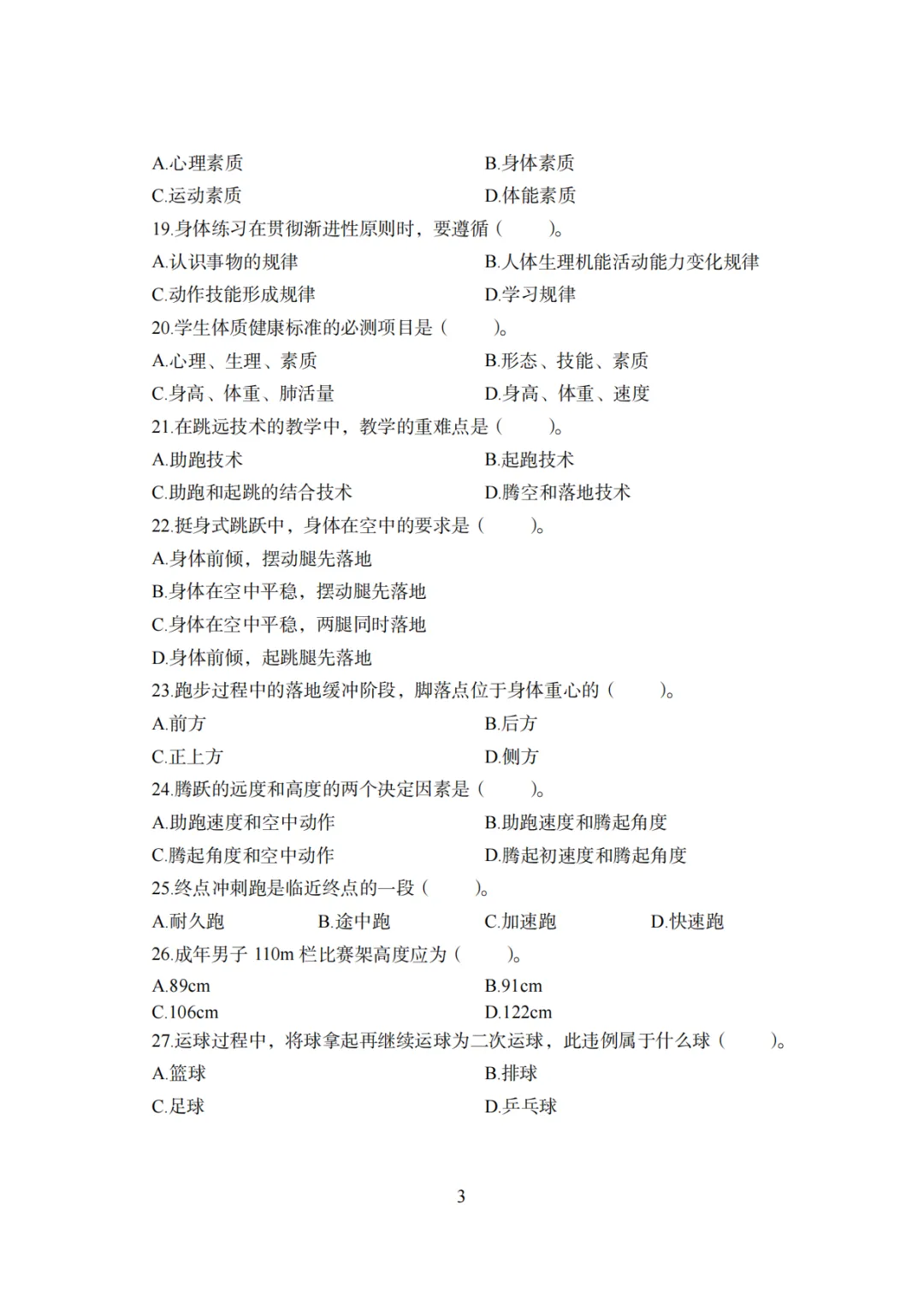 >26上教资笔试初中体育科三历年真题更新至25年含答案可打印