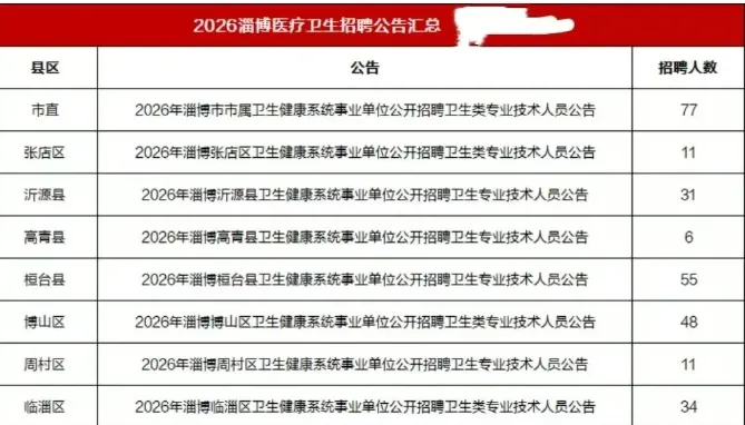淄博市2026年卫生健康系统事业单位公开招聘正在进行中,市属及多个区县同步招聘,报名将于3月3日16:00截止,仅剩最后几天,请抓紧时间!
