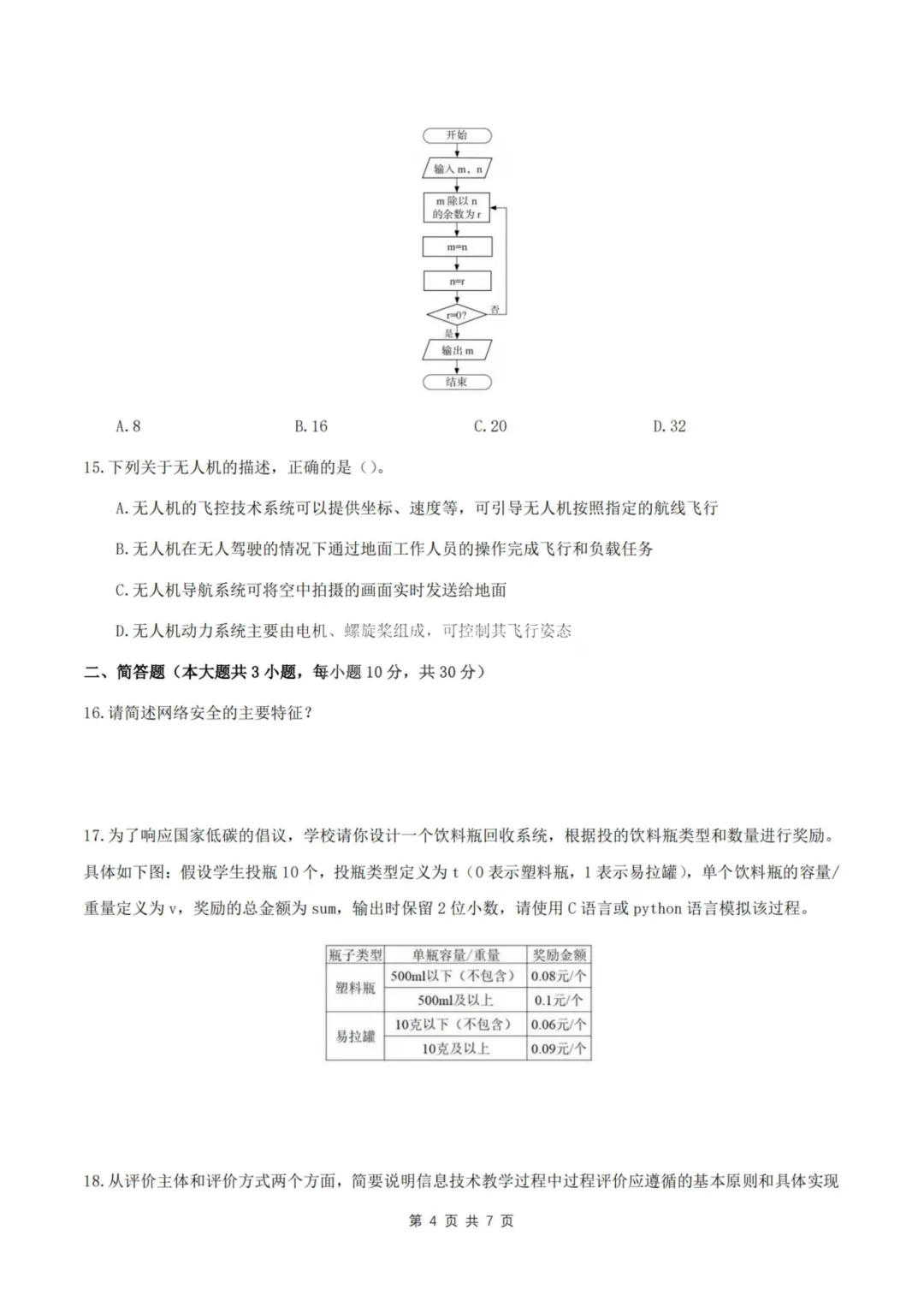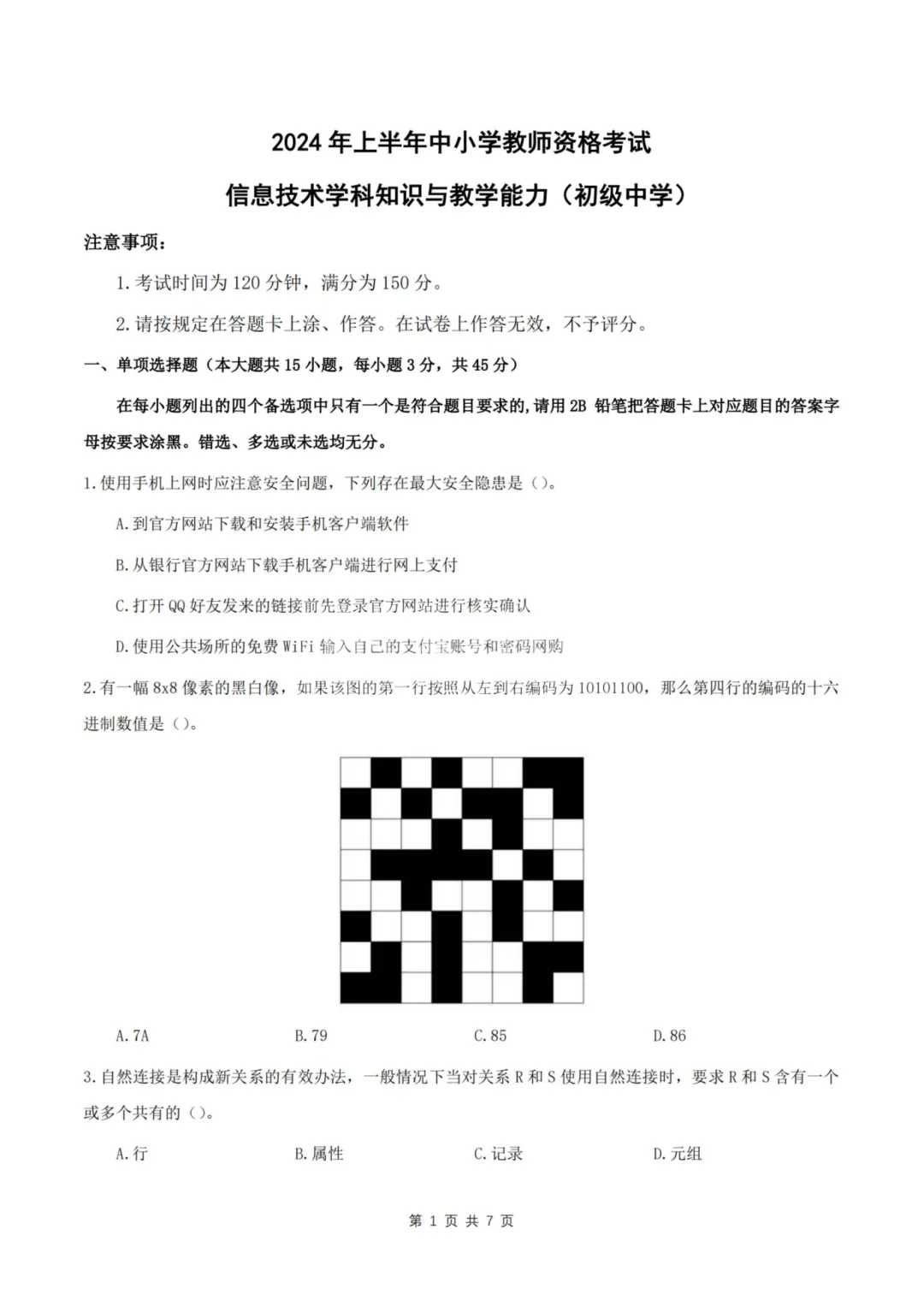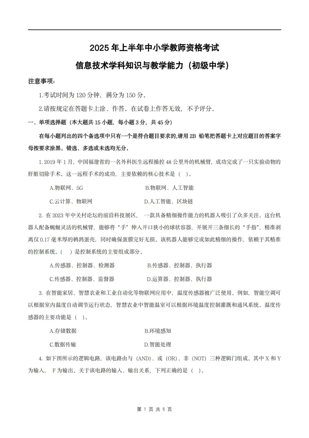 26上教资笔试初中信息技术三历年真题更新至25年含答案可打印