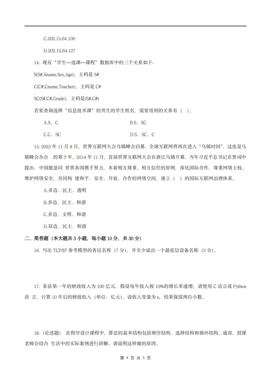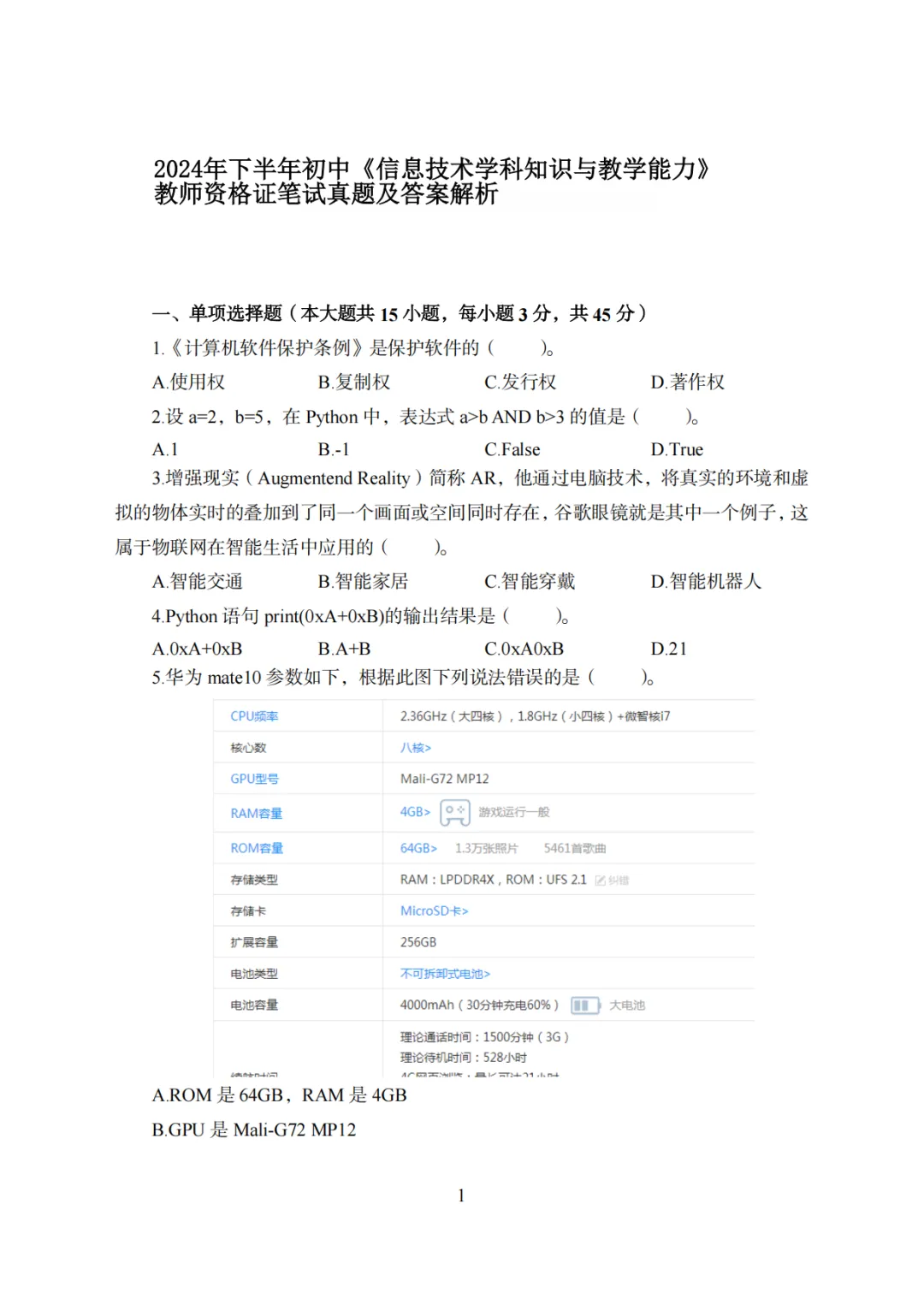 26年3月教资笔试科目三高中信息技术历年真题汇总含答案可打印