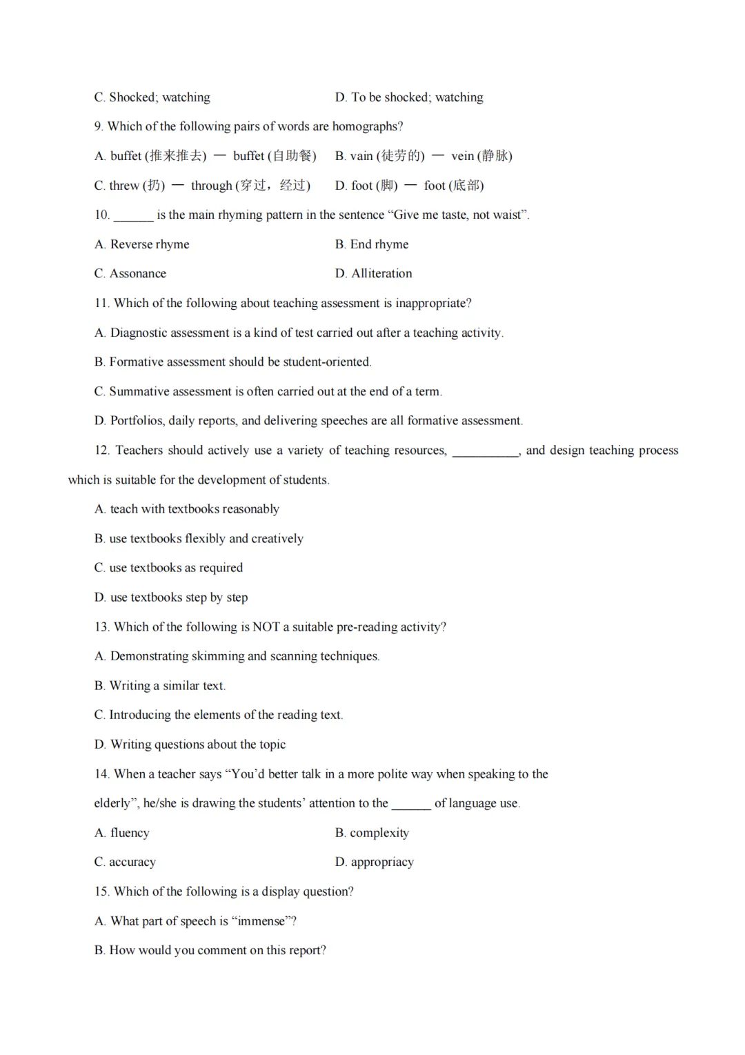 26上教资笔试高中英语科三历年真题更新至25年含答案可打印