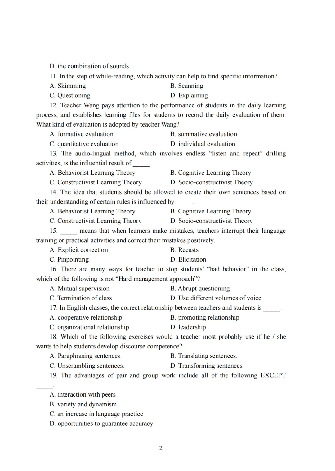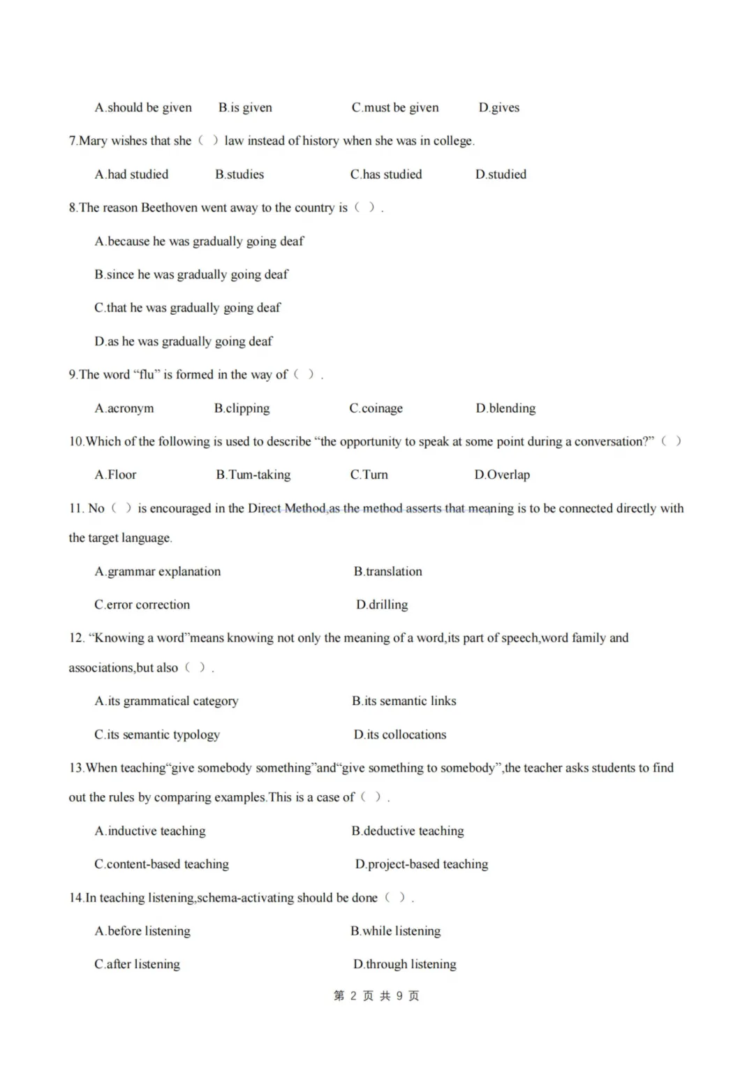 26年3月教资笔试科目三初中英语历年真题汇总含答案可打印