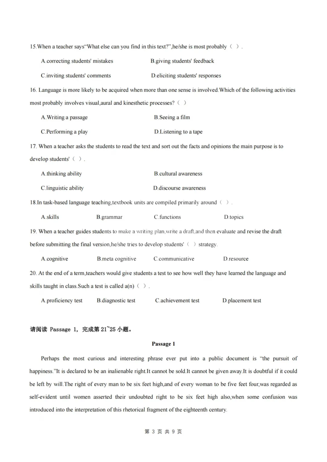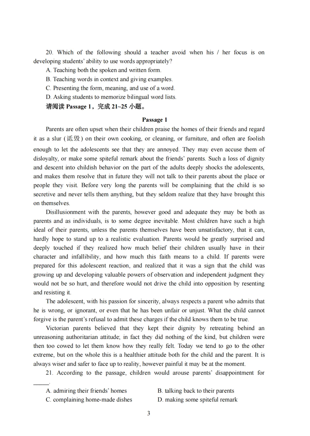 >26上教资笔试高中英语科三历年真题更新至25年含答案可打印