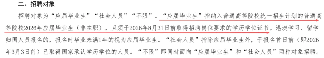 岗位表里面,应届毕业生的定义是2026届的应届生(25届不算了);若你是境外学历的考生,毕业未满1年,也可以报考应届生岗位。