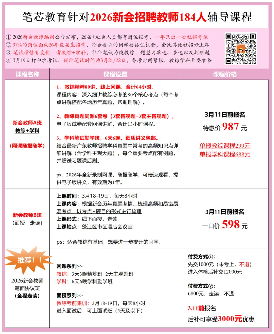 (来源:江门市新会区教育系统2026年公开招聘事业编制教师公告)