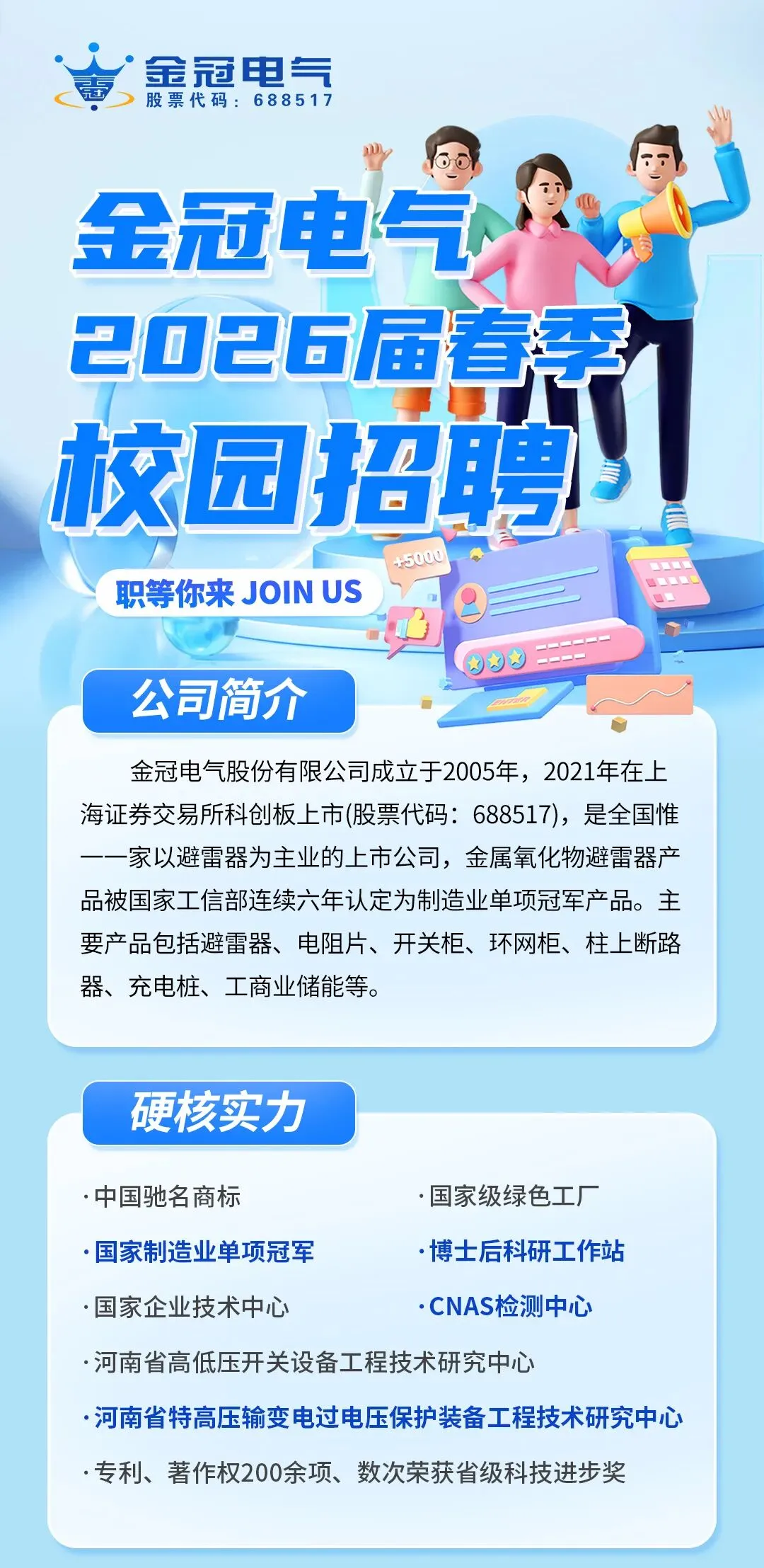 春招丨应届生·校园招聘 |金冠电气2026届春季校园招聘正式启动!