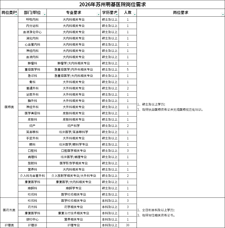 校园招聘 | 你有“医”术,我有“基”遇——苏州明基医院2026春季校园