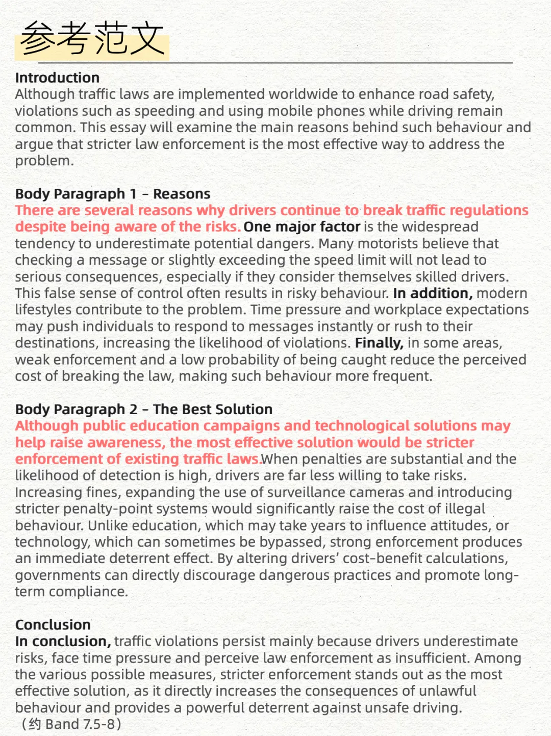 2.题干包含绝对词「best」,即不是 asking for solutions,而是 the best solution。不能简单并列多个措施而是要论证「最佳措施」。