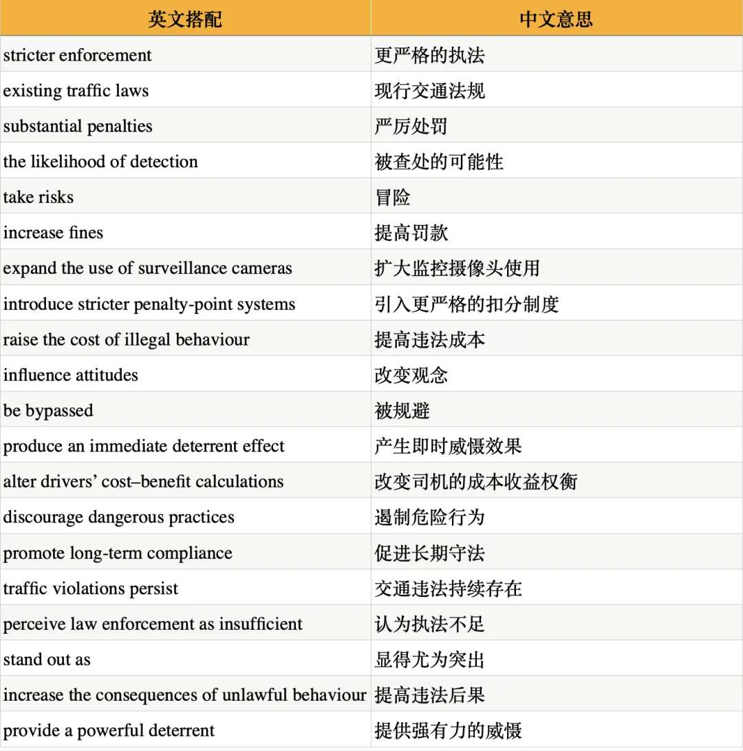 尽管公共宣传和技术手段有助于提升安全意识,但最有效的解决方案仍然是加强现有交通法规的执法力度。当处罚足够严厉且被查处的概率较高时,司机将大大减少冒险行为。提高罚款金额、扩大监控摄像头的使用范围以及实施更严格的扣分制度,都能显著提高违法成本。与可能需要多年才能改变观念的教育措施,或可能被规避的技术手段不同,强有力的执法能够立即产生威慑效果。通过改变司机对“成本—收益”的权衡,政府可以直接遏制危险驾驶行为,并促进长期守法意识的形成。
