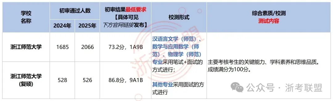 2025年,经过专家严格评审,共有 2066 名考生(以及复硕526名考生)通过资格评审,获得参加浙江师范大学综合素质测试的资格。