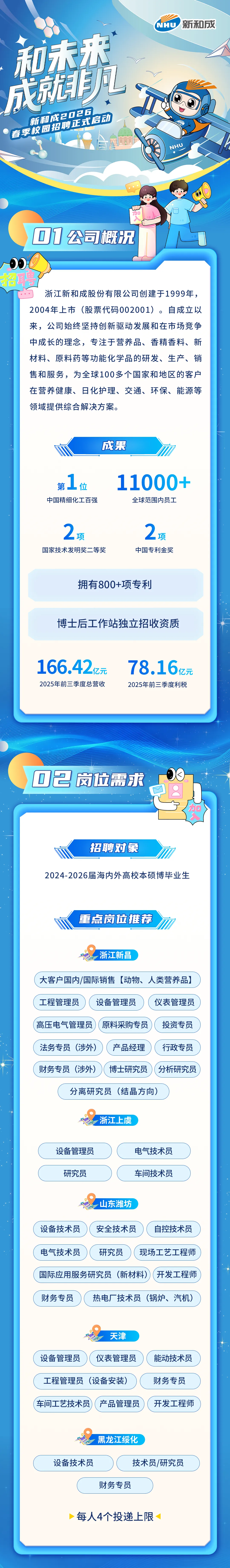 当前位置:首页>应届生招聘>春招丨应届生·新和成2026春季校园招聘正式启动