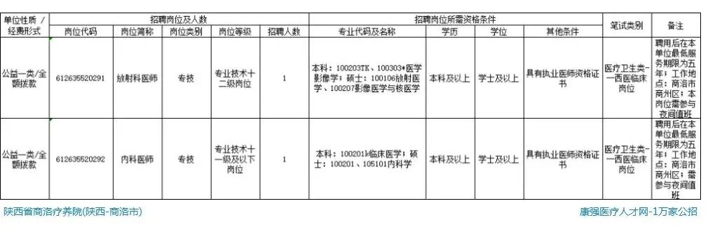 【应届生】陕西省商洛疗养院招聘公告,本科起,招2人