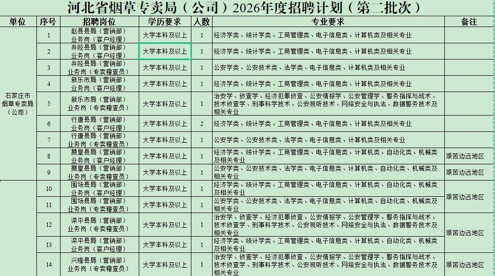 2.河北省烟草专卖局(公司)2026年度招聘计划(第二批次)