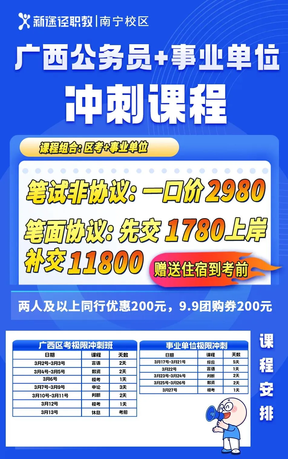 ✅ 考公专业团队:深耕广西国考培训多年,深谙广西考情、命题规律与岗位特点。教师团队均为经验丰富的公考专家,不仅理论功底扎实,更善于将复杂知识点转化为简单易懂的解题技巧,助你快速掌握考试要点。