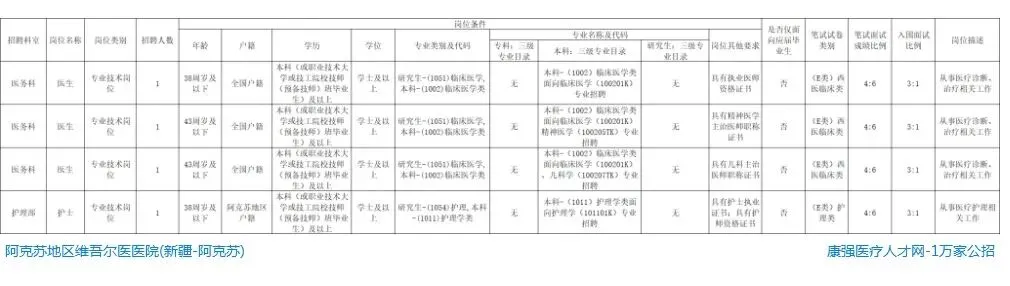 【应届生】阿克苏地区维吾尔医医院招聘公告,本科起,招4人