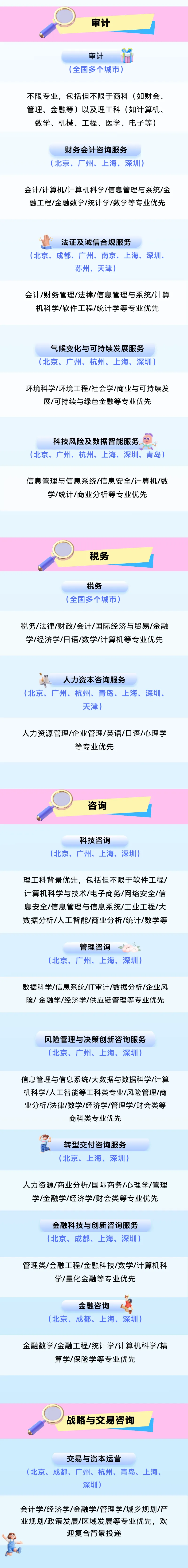 行业分类全面:互联网 / IT软件 / 游戏 / 电子信息 / 物联网 / 通信 / 银行 / 证券 / 金融 / 快消零售 / 食品 / 机械 / 智能制造 / 汽车 / 自动驾驶 / 交通物流 / 航空航天 / 土木建筑 / 城乡规划 / 水利工程 / 环境工程 / 石油化工 / 化学 / 能源电力 / 矿产 / 新能源 / 芯片 / 半导体 / 生物医药 / 教育 / 法律 / 财务 / 咨询 / 文化传媒等全行业岗位信息。