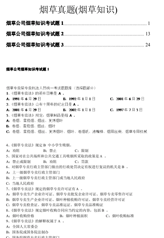烟草行业知识(必考)