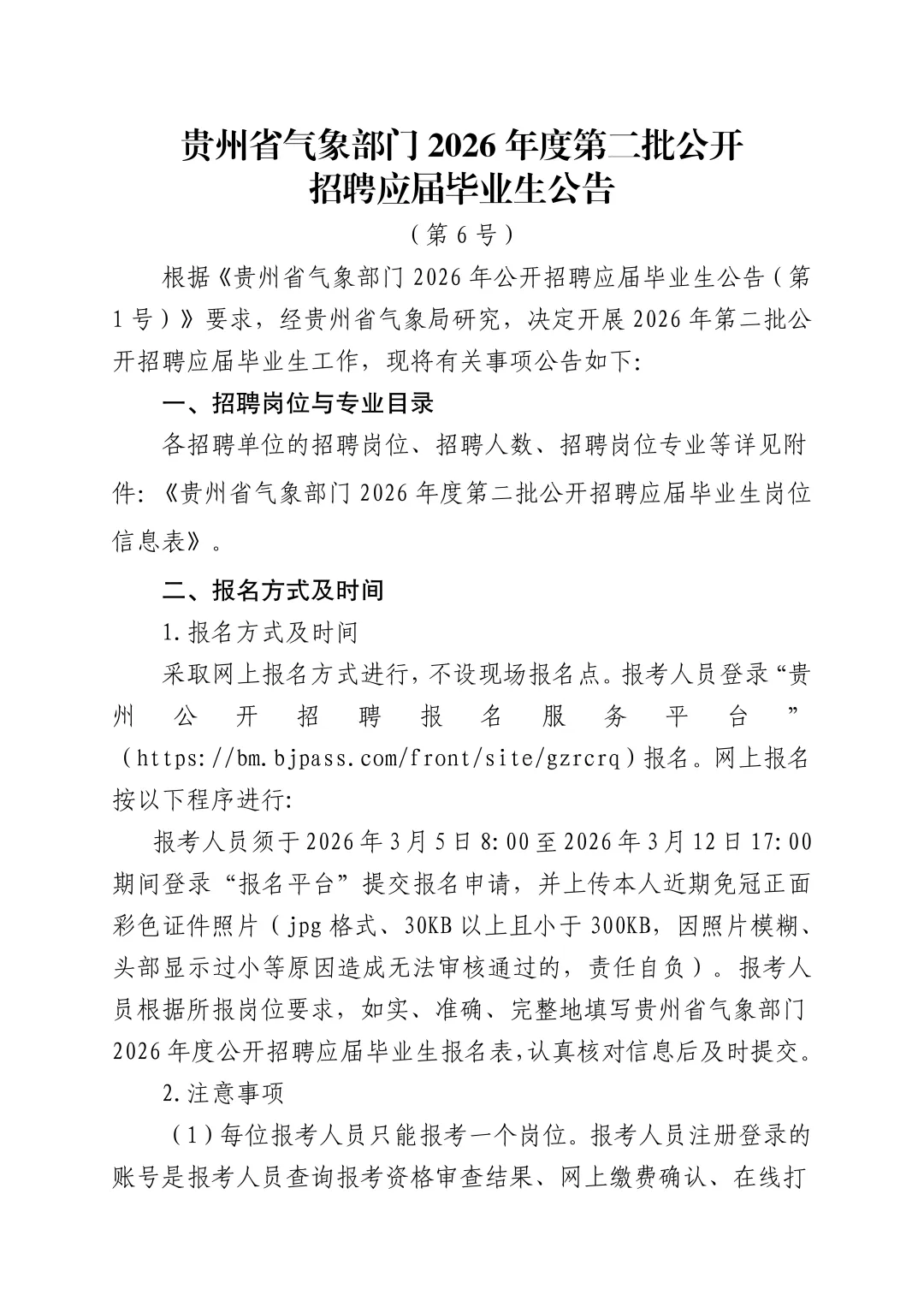贵州省气象部门招新啦!2026年度第二批应届生招聘启动,快来报名!