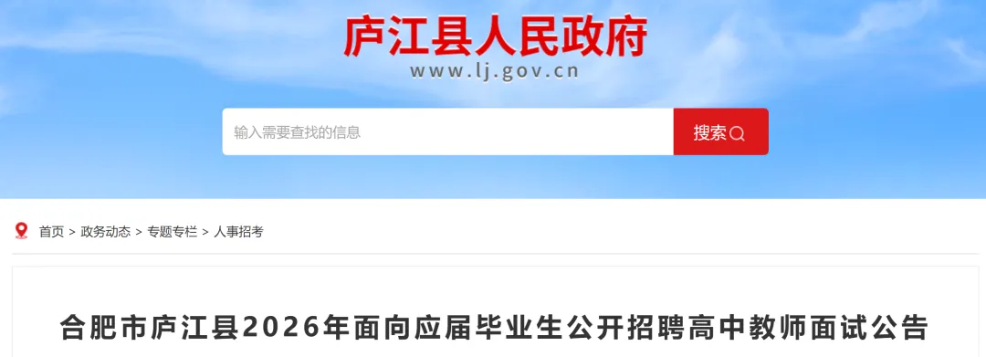 现就合肥市庐江县2026年面向应届毕业生公开招聘高中教师面试有关事项公告如下:一、《面试通知书》打印