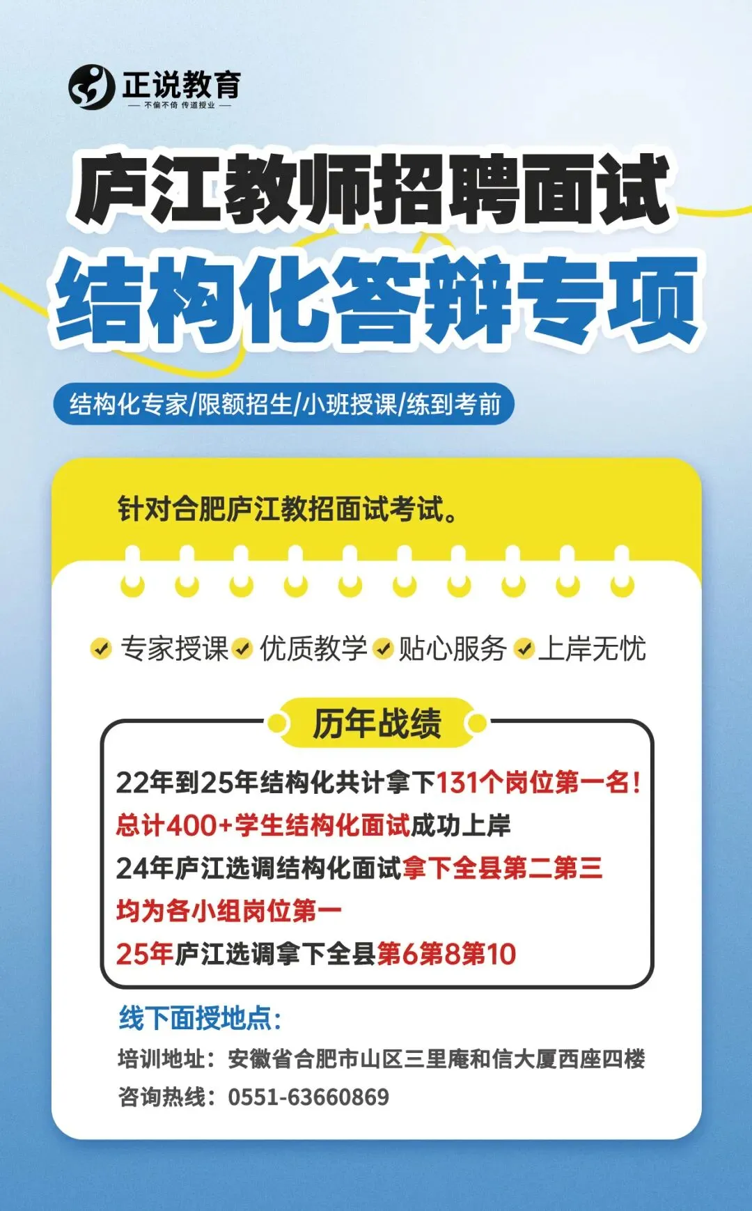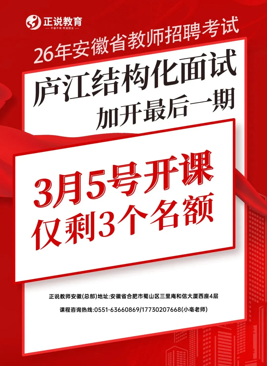 3月8日面试!庐江教师招聘应届生及选调县外教师面试公告