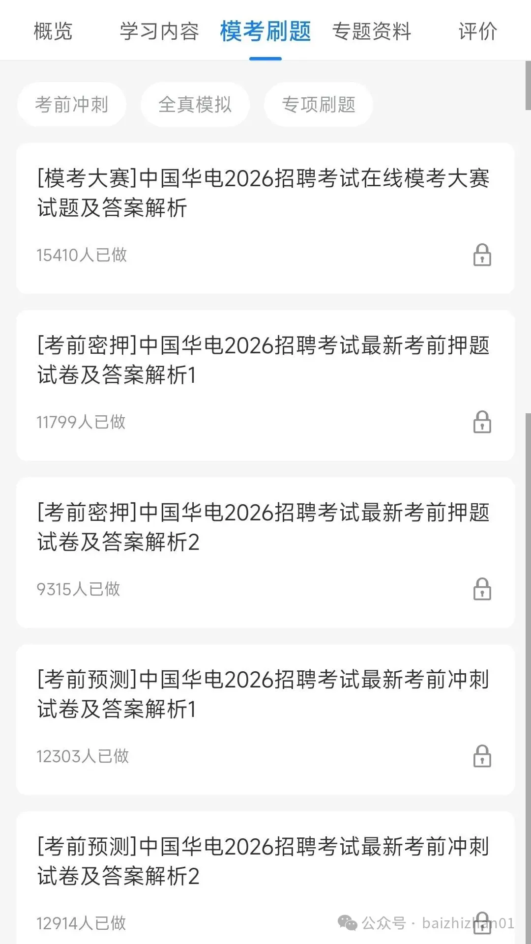 -历年真题套题:【百职斩】公众号发消息内回复“中国华电”获取-中国华电笔试历年真题+视频课+复习资料+机考模拟+APP刷题库+企业文化知识+时政(已根据官网考试大纲更新复习资料,分为11个大类)中国华电笔试历年真题+视频课+复习资料+机考模拟+APP刷题库+企业文化知识+时政(已根据官网考试大纲更新复习资料,分为11个大类)