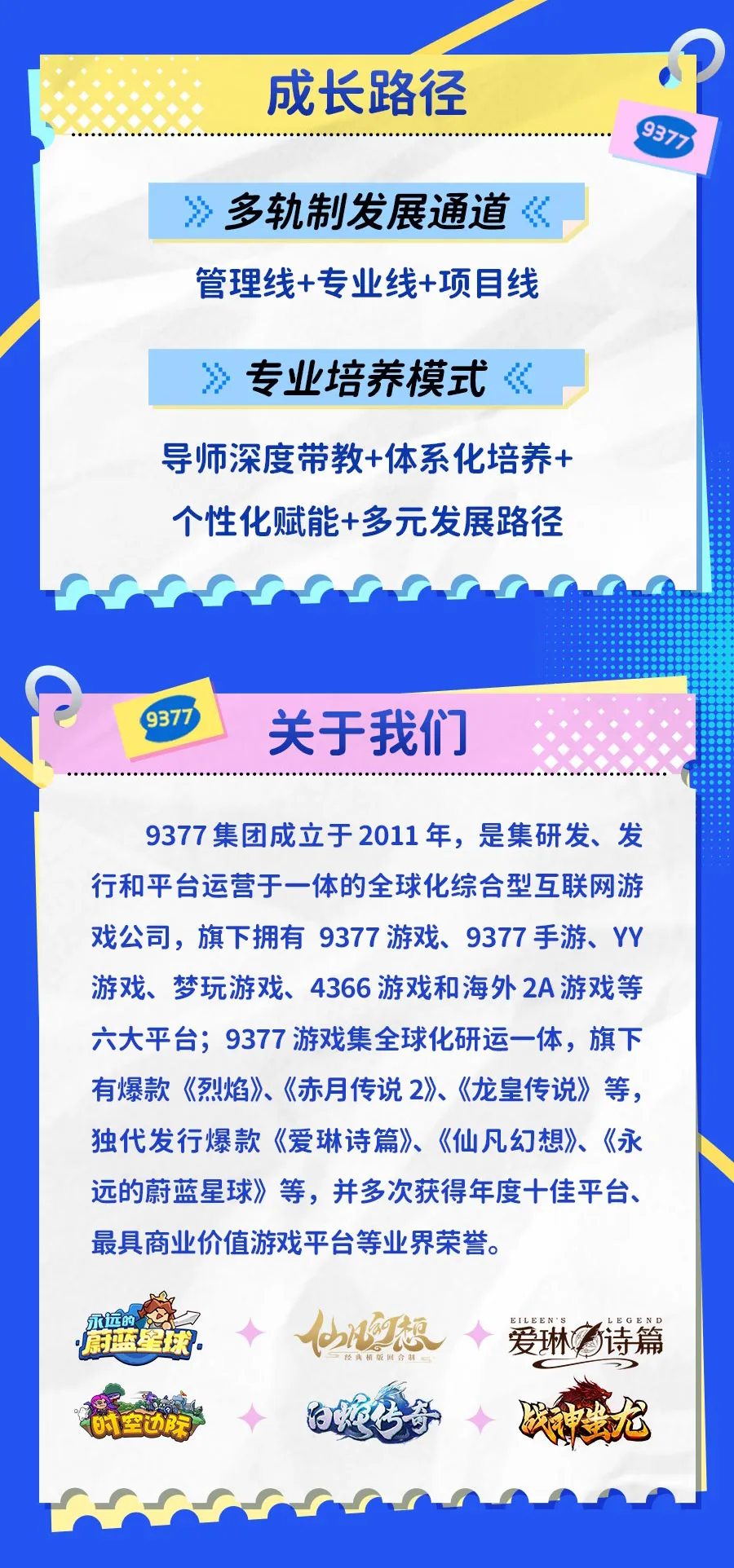 9377游戏成立于2011年4月,是中国著名的集研发、发行和平台运营于一体的综合型互联网游戏公司,中国互联网100强企业。9377坚持原创,并全面推行精细运营,积极打造精品游戏,凭借多元化和精品化的产品,长期在游戏市场占据领先地位。