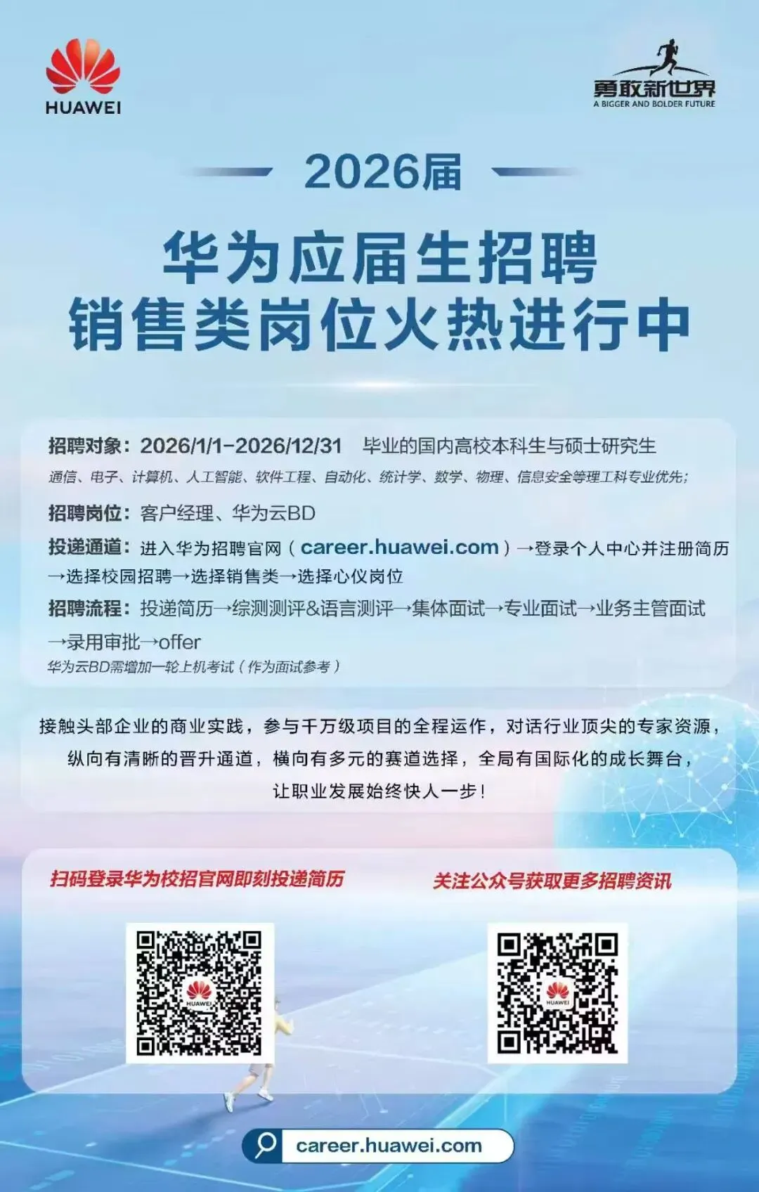>名企校招丨2026届华为销售类岗位应届生招聘