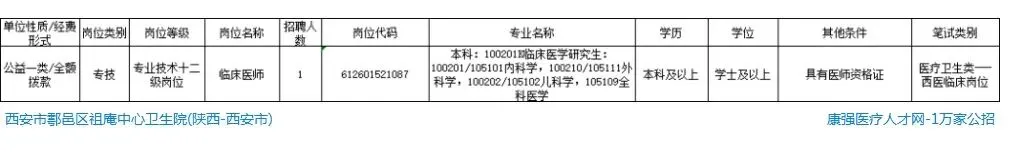【应届生】西安市鄠邑区祖庵中心卫生院招聘公告,本科起