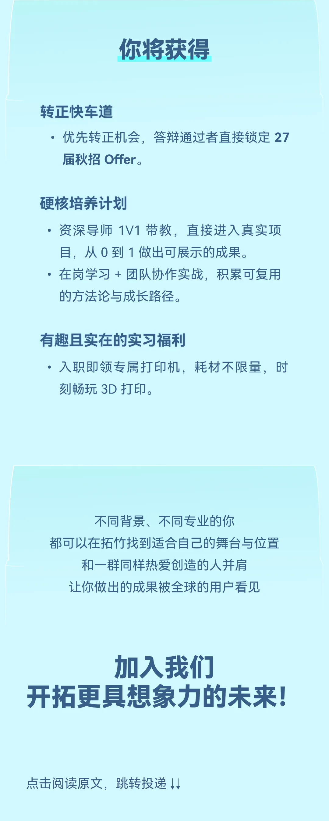 春招丨应届生·校园招聘 |拓竹 26 届春招 & 27 届暑期实习同步开启,40+ 岗位方向可选