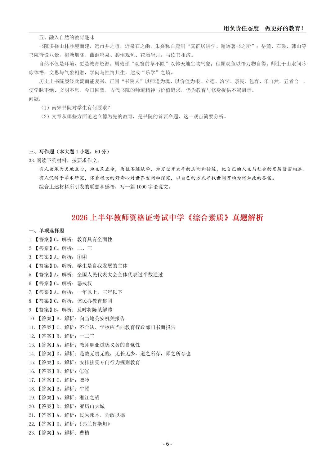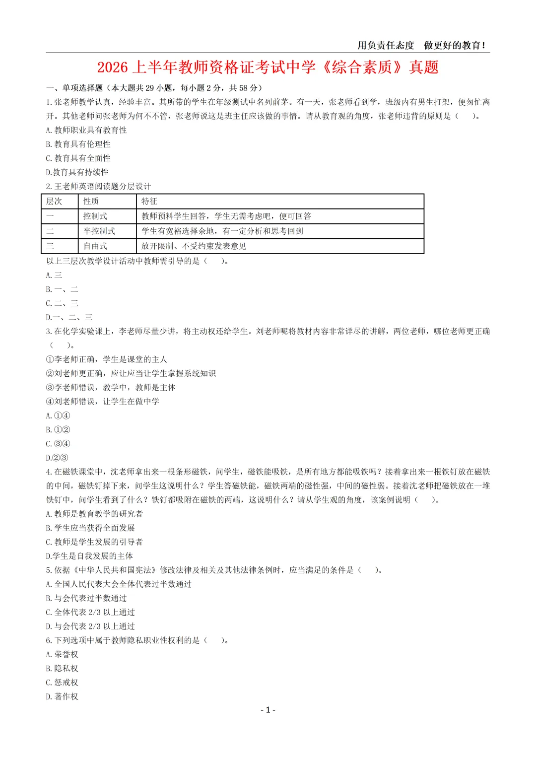 当前位置:首页>笔试招聘真题>2026上教资笔试科目一《综合素质》真题试卷及参考答案