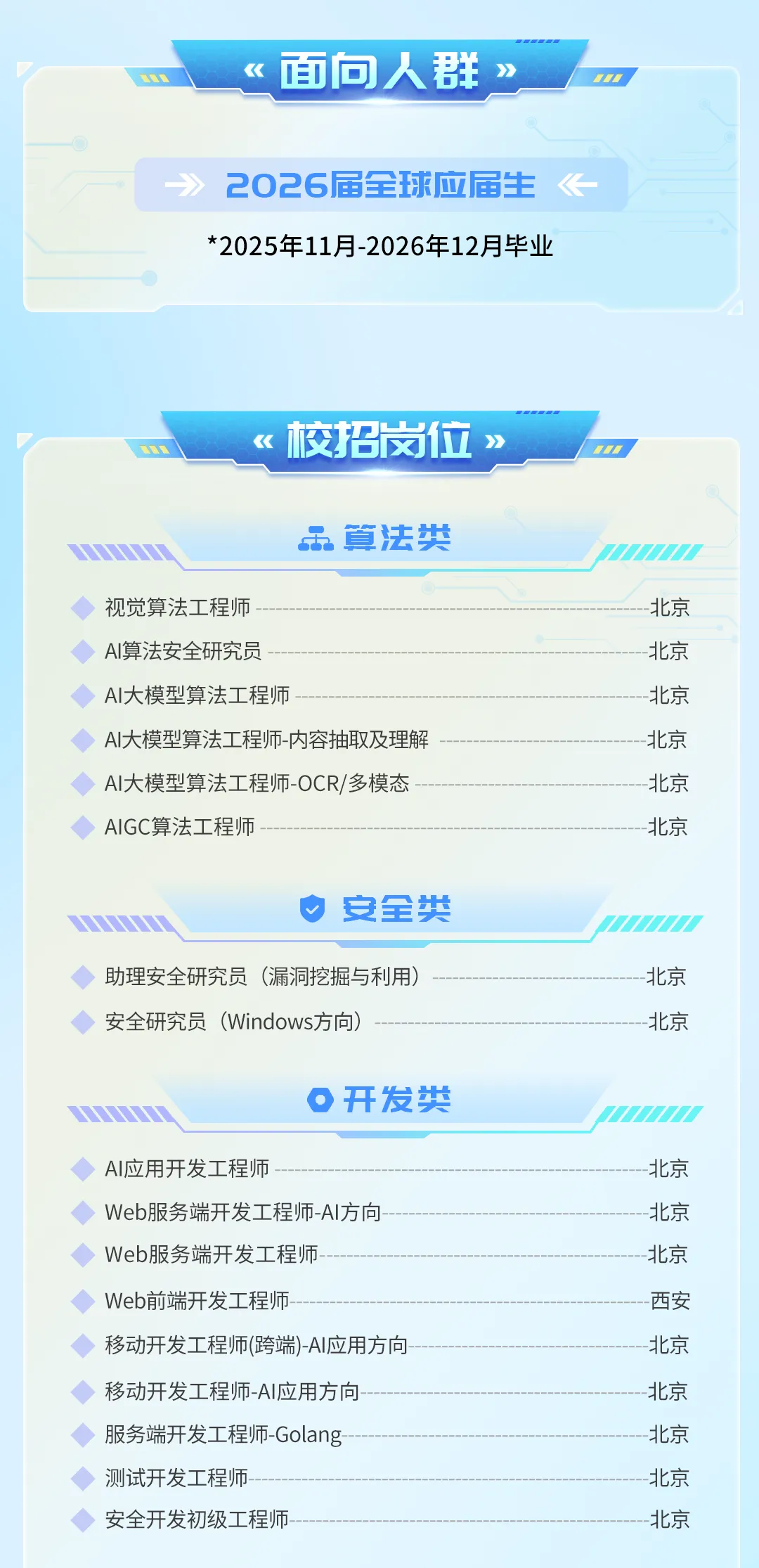 当前位置:首页>应届生招聘>春招丨应届生求职·360集团2026春季校园招聘全面启动!