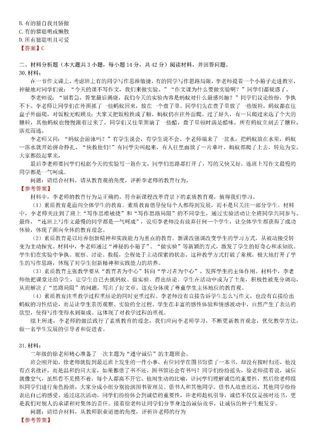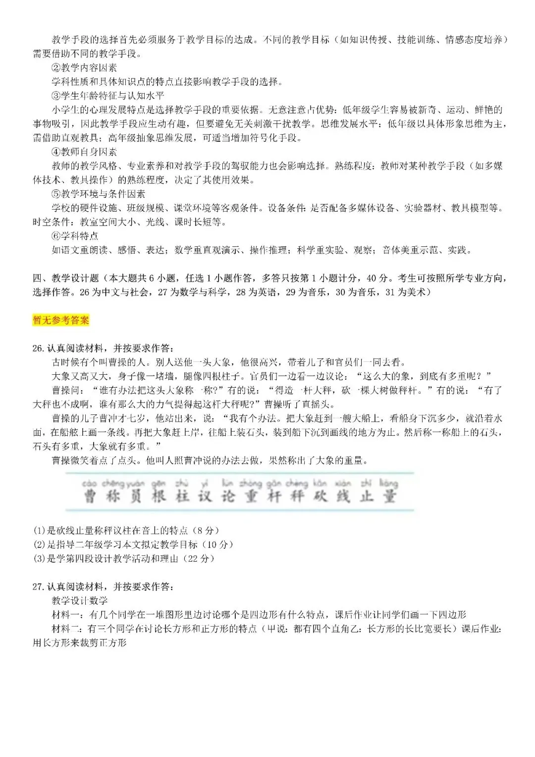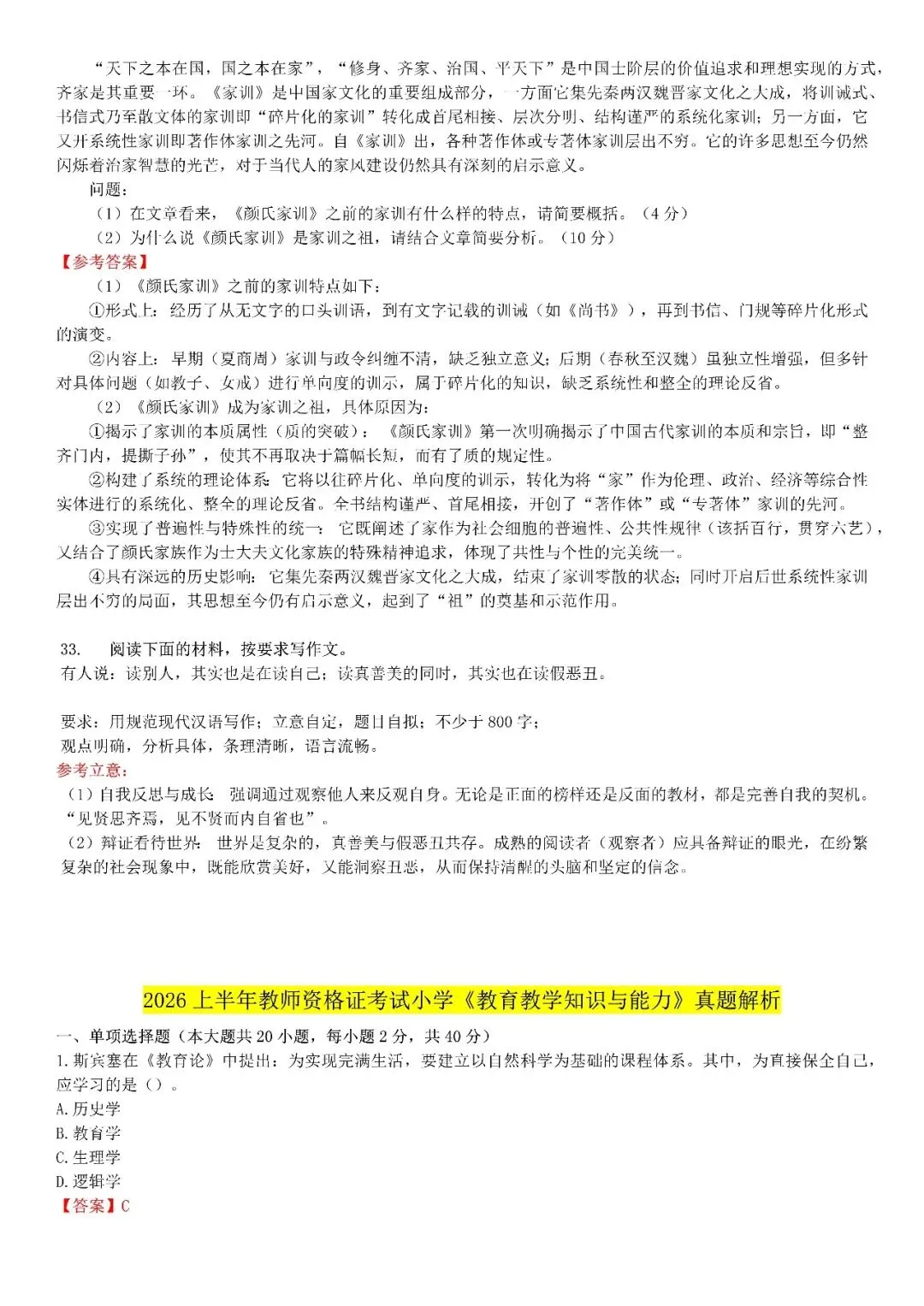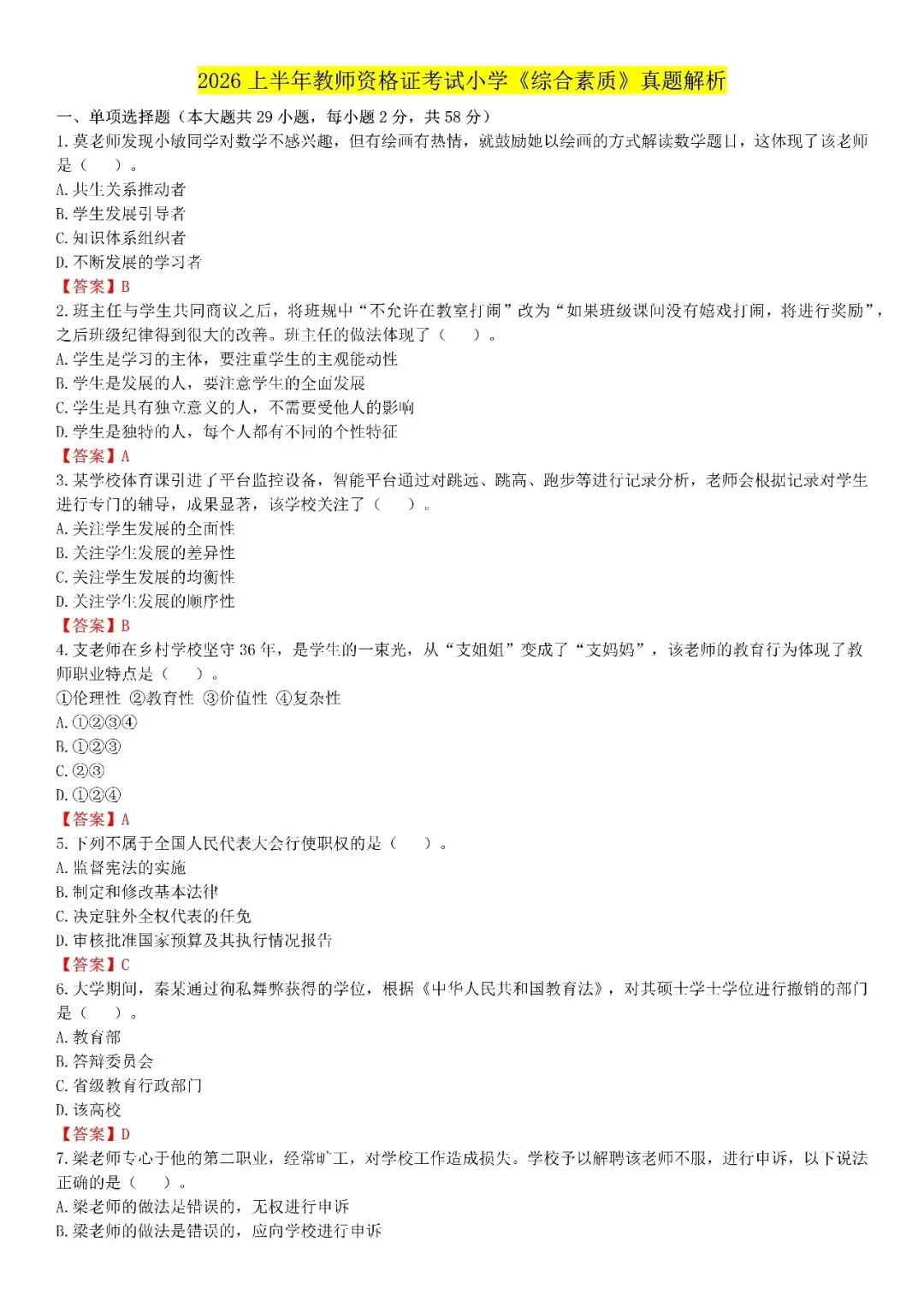 【小学】2026上教资笔试真题答案解析