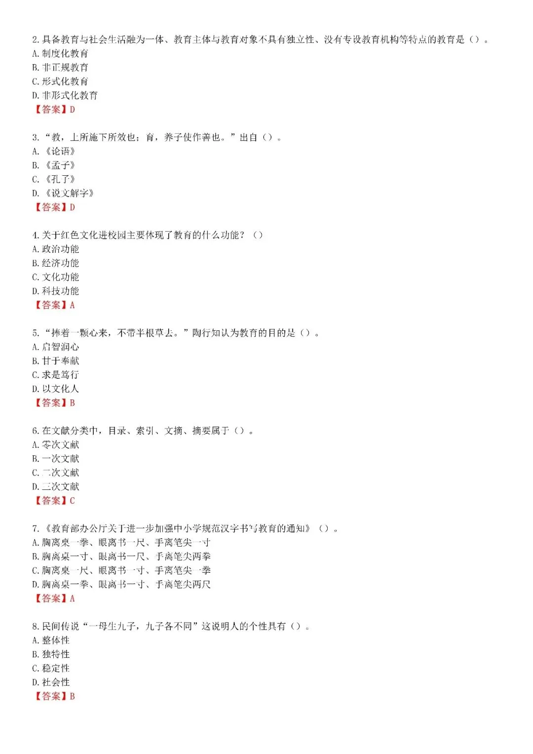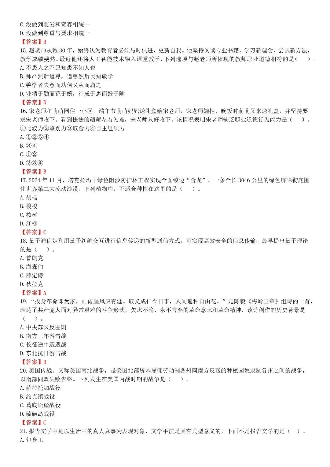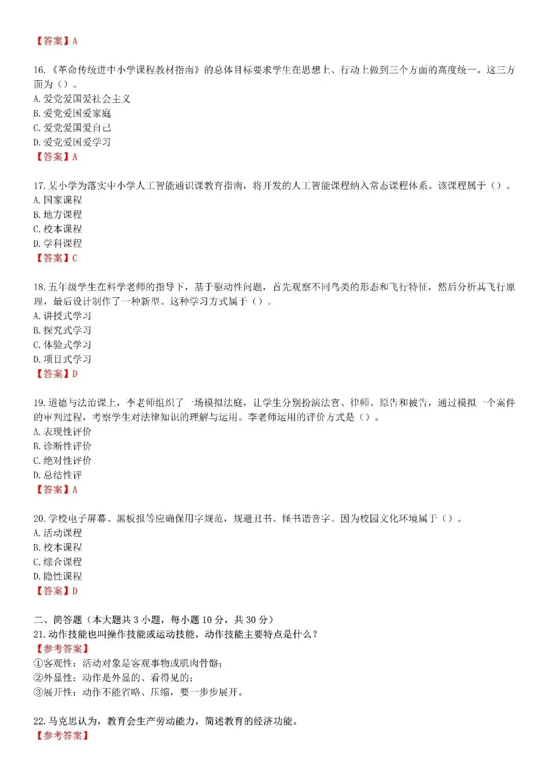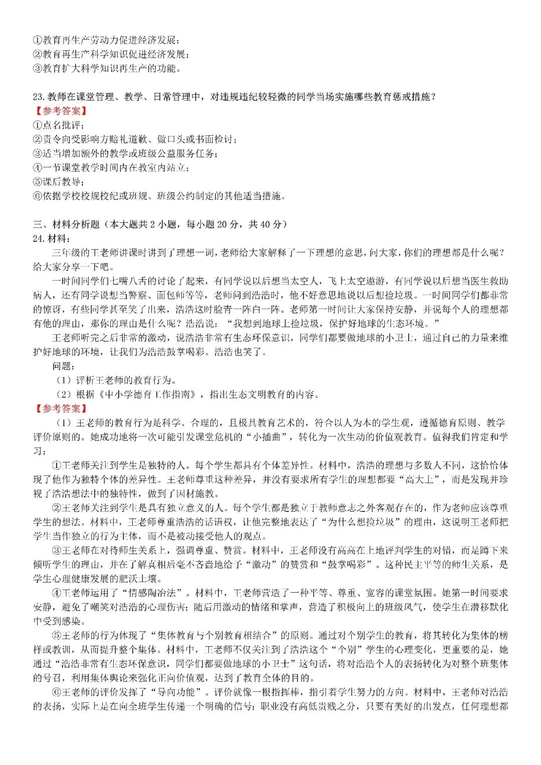【小学】2026上教资笔试真题答案解析