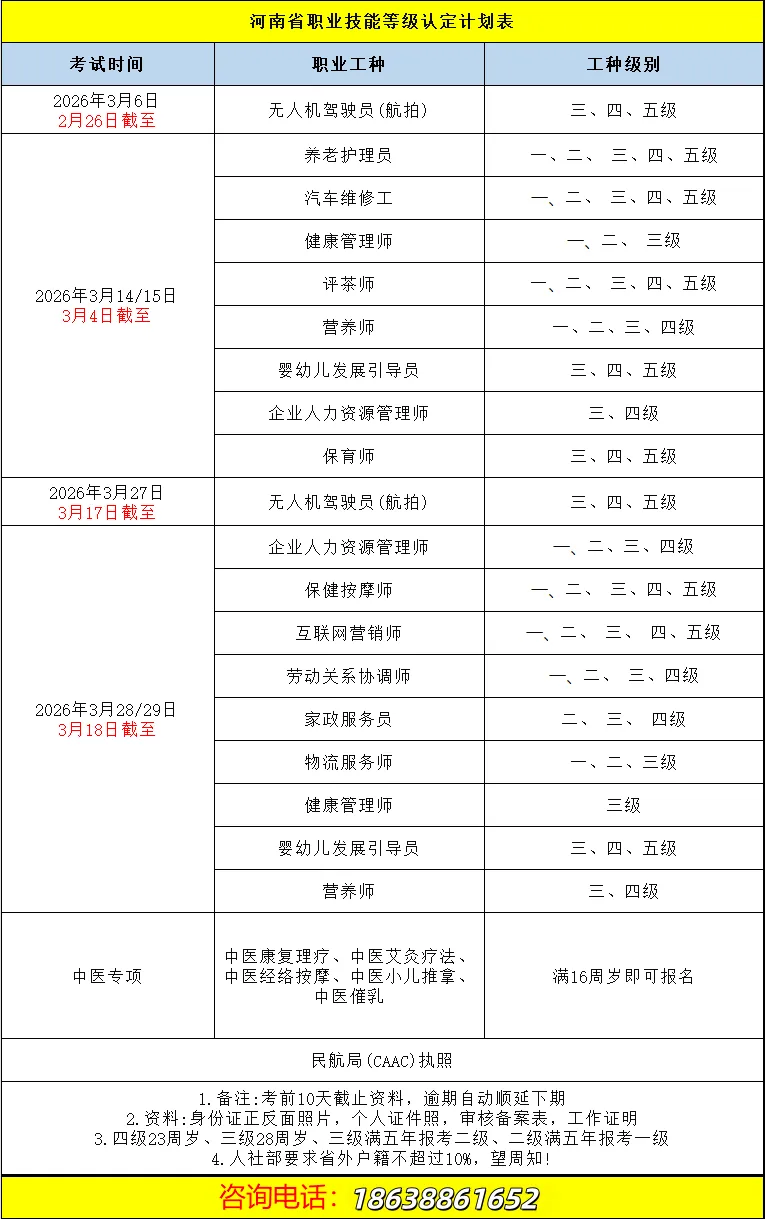 职业技能等级考试安排