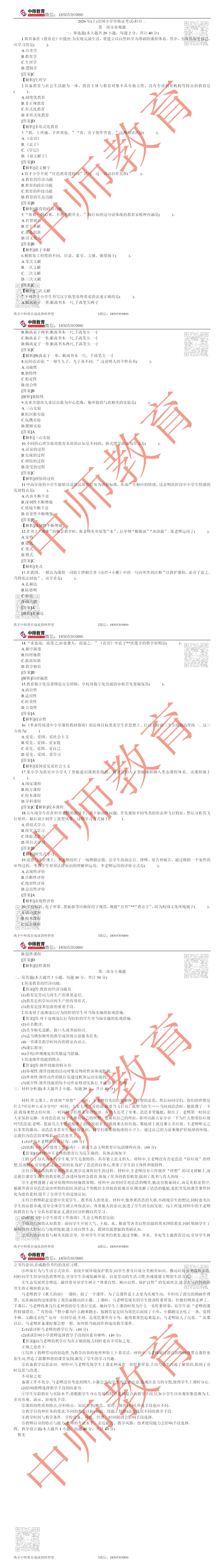 【小学】2026上教资笔试真题答案解析