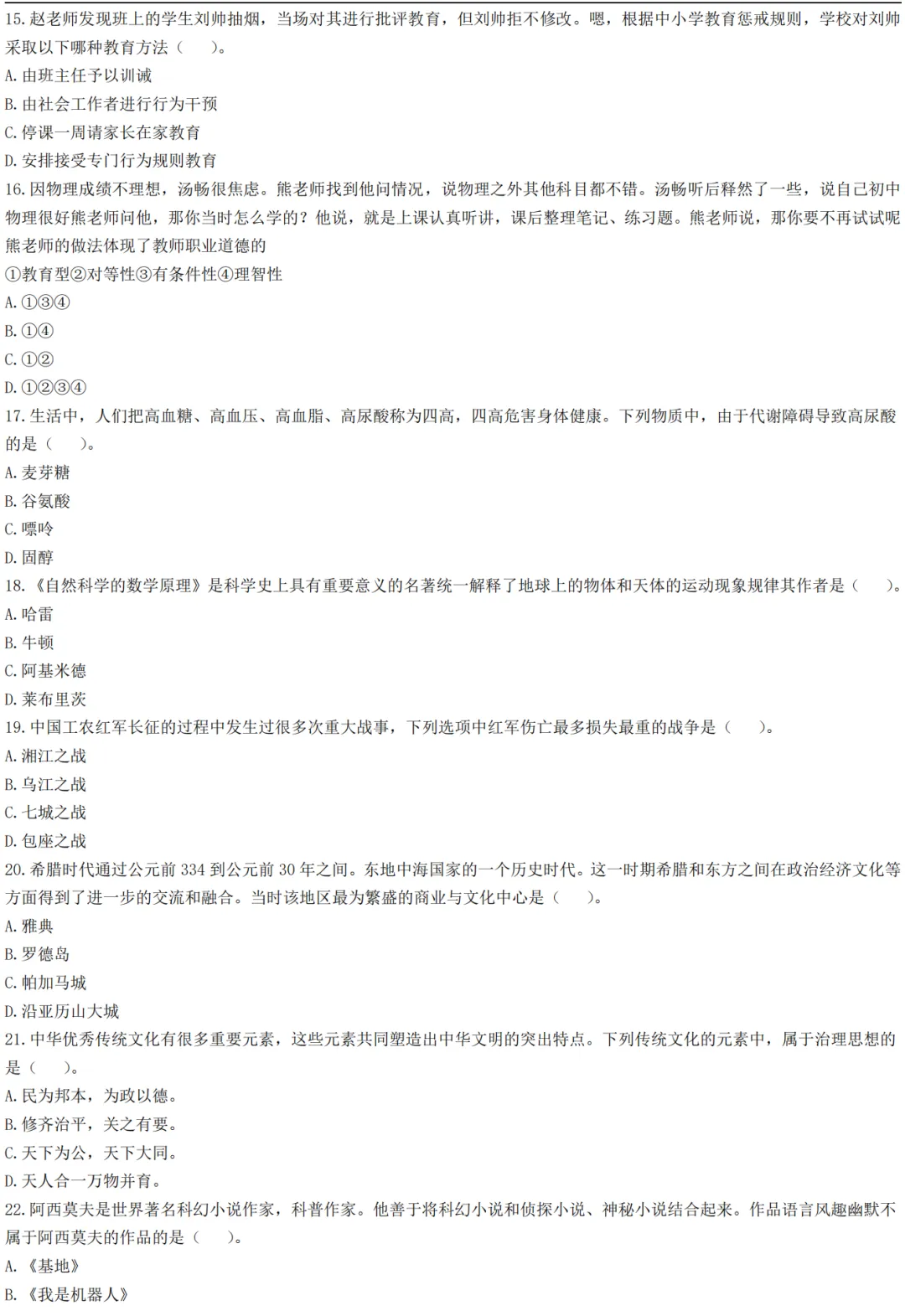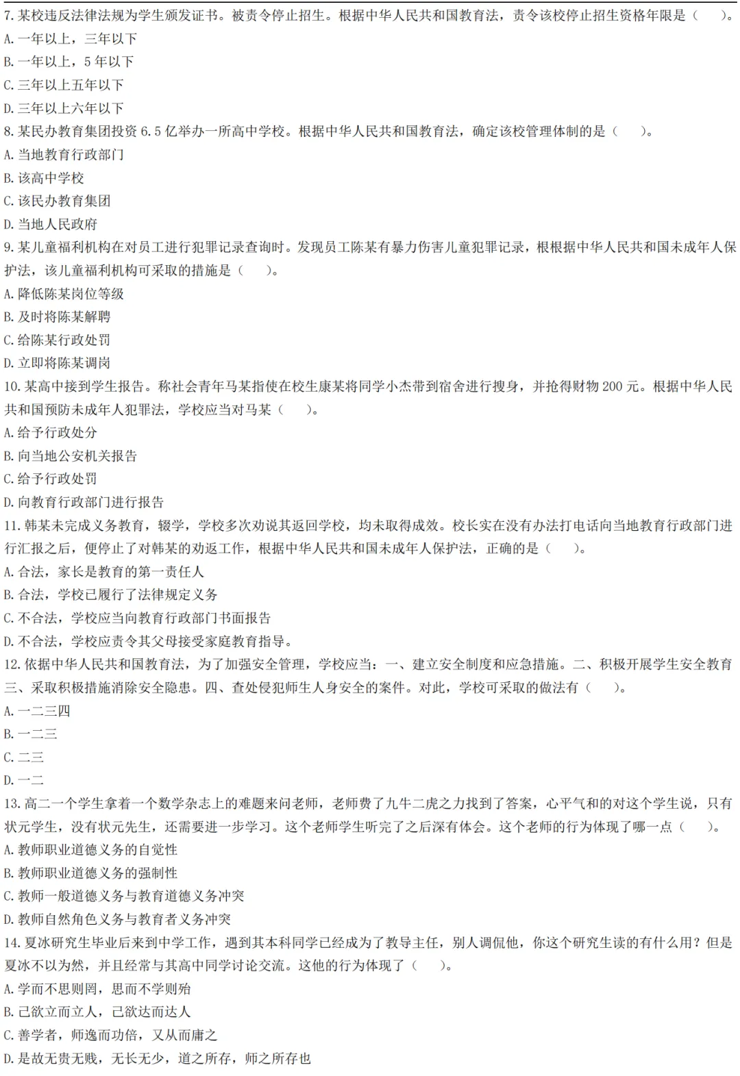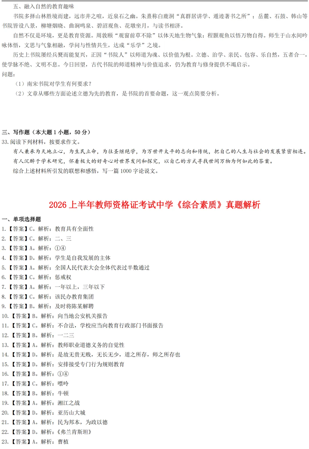 2026上教资笔试中学《综合素质》真题及答案【完整版】