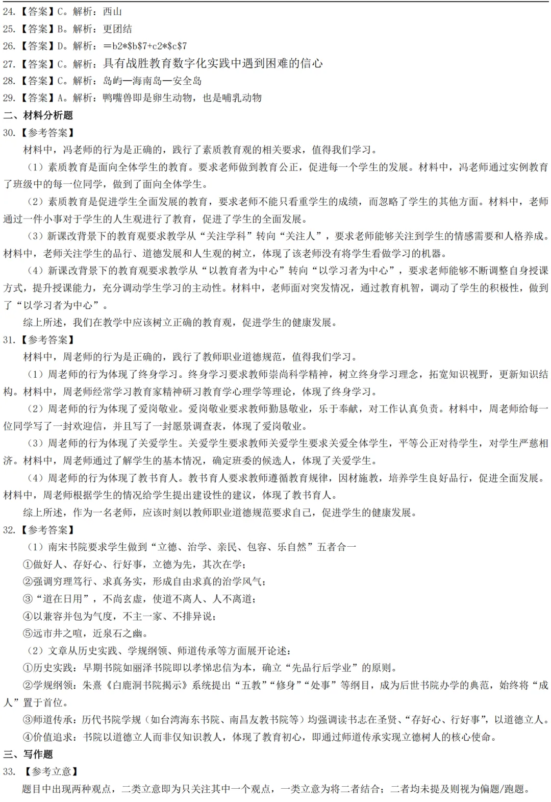 【已完整】2026年上半年教师资格笔试真题答案汇总(含小学中学幼儿园),科目一科目二科目三汇总pdf高清可下载
