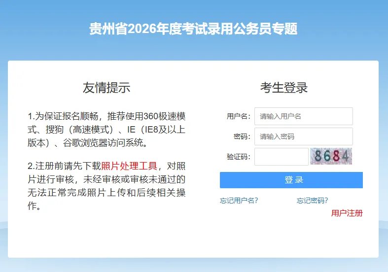 贵州省2026年度省、市、县、乡四级机关统一面向社会公开招录公务员笔试暨省、市两级机关公开遴选公务员笔试温馨提示