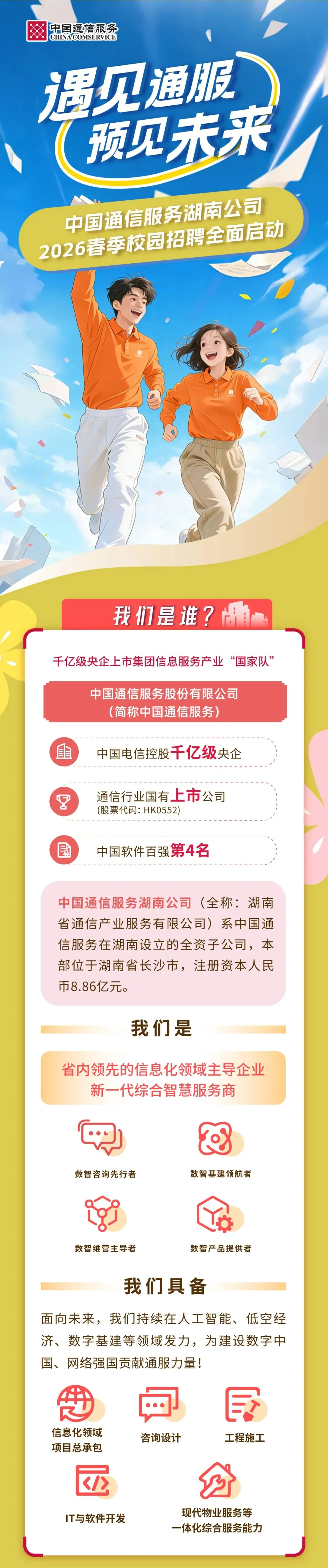 春招丨应届生·校园招聘 |中国通信服务湖南公司2026春季校园全面启动