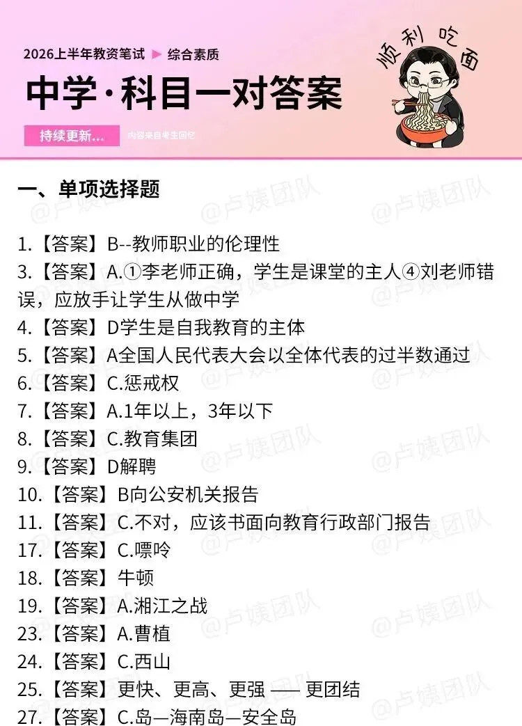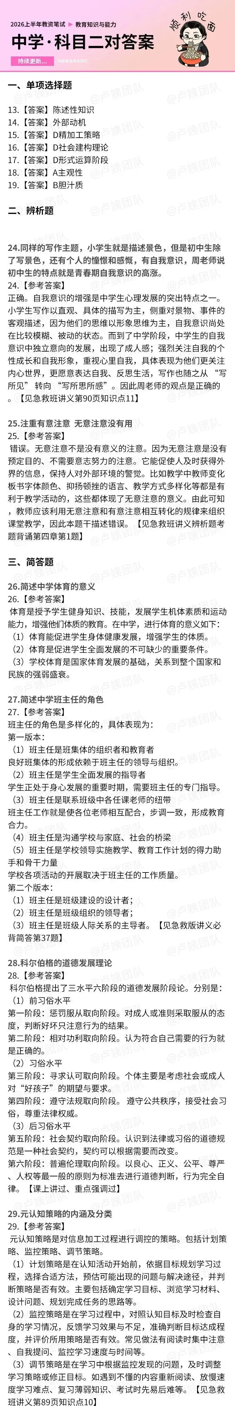 2026上半年教资笔试考试尘埃落定了!今天给各位小伙伴准备的教资资料是:
