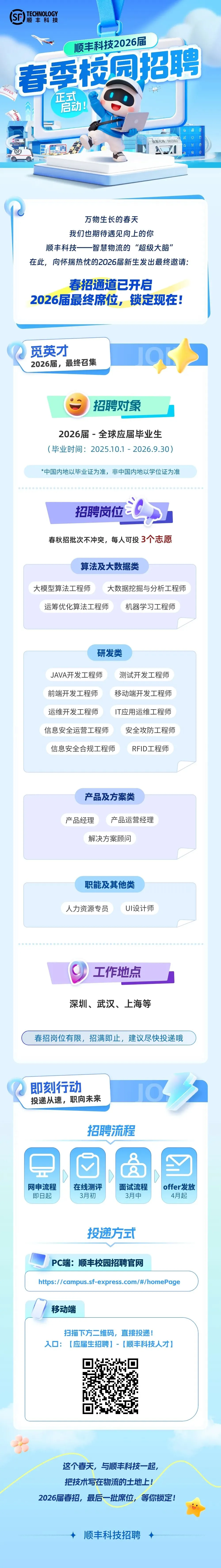 春招丨应届生·校招丨顺丰科技2026届春季校园招聘正式启动!