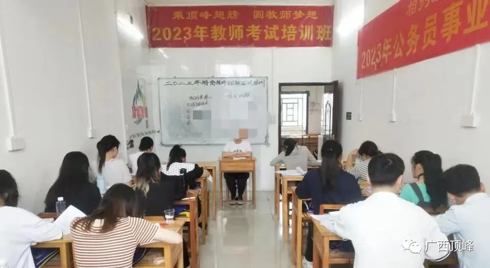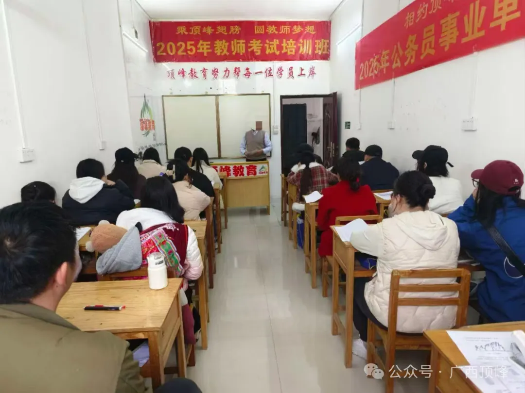 点击下方广西顶峰公众号关注我们,参与教师资格、教师招聘、公务员、事业单位笔试题库训练和网校课堂、学历教育等学习及各类考试成绩查询!