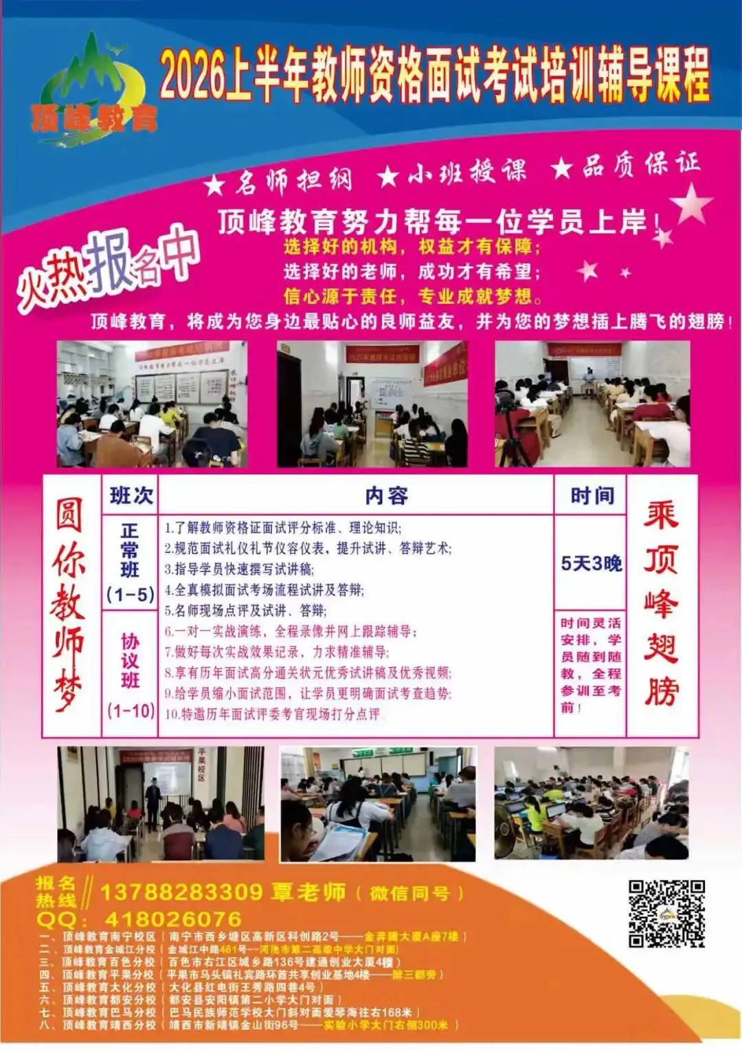2026上半年教师资格面试培训火热报名中,报名热线(微信同号):13788283309 覃老师 qq:418026076