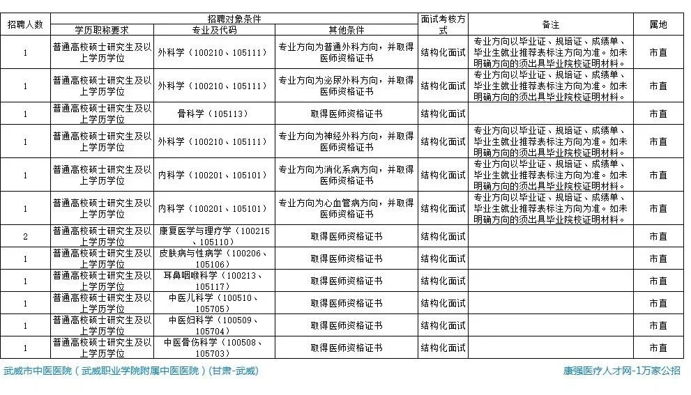 1:武威市2026年高层次和急需紧缺人才引进岗位需求表