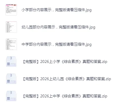 【完整版】2026上小学《综合素质》真题和答案.zip,点击链接或复制整段内容,打开夸克APP即可下载。